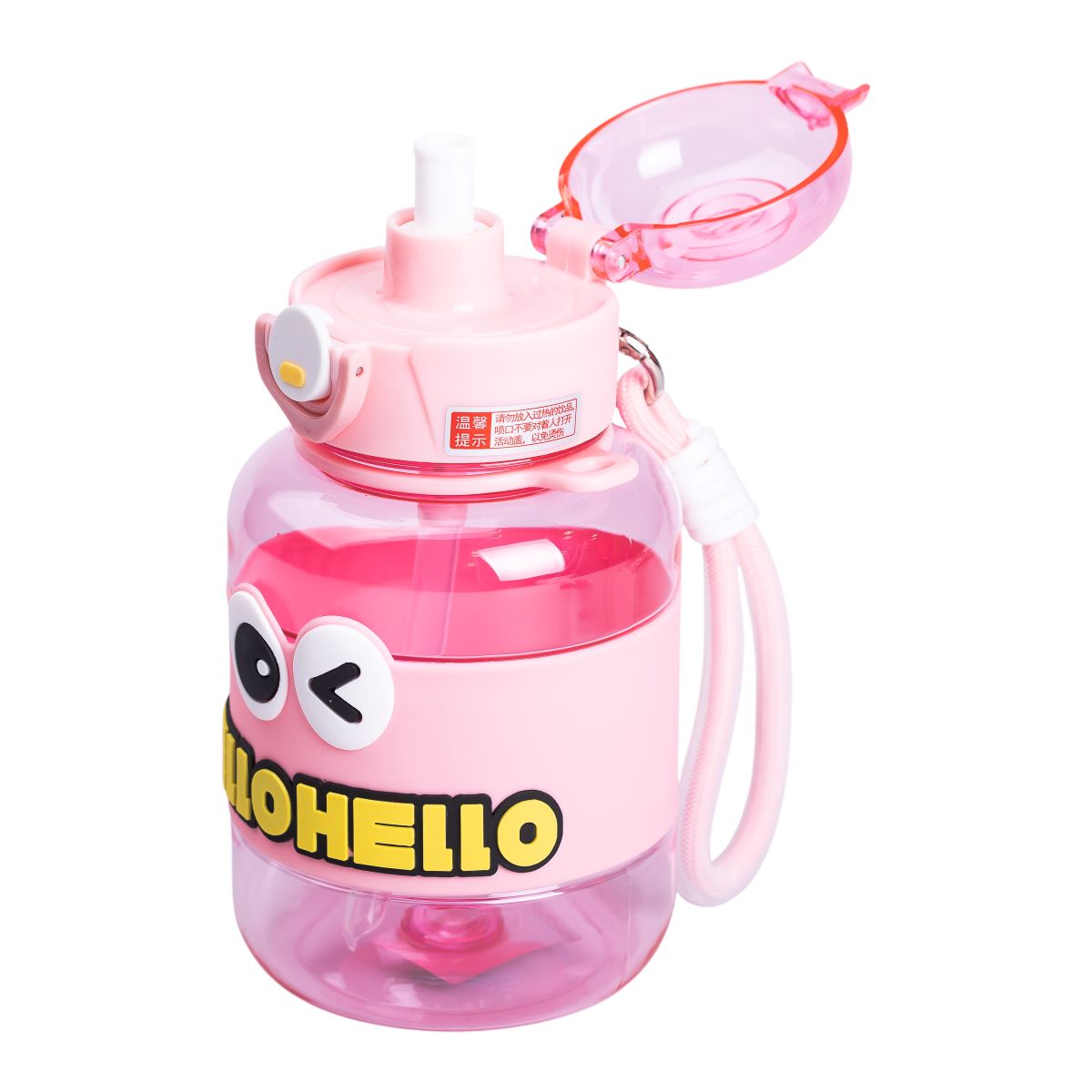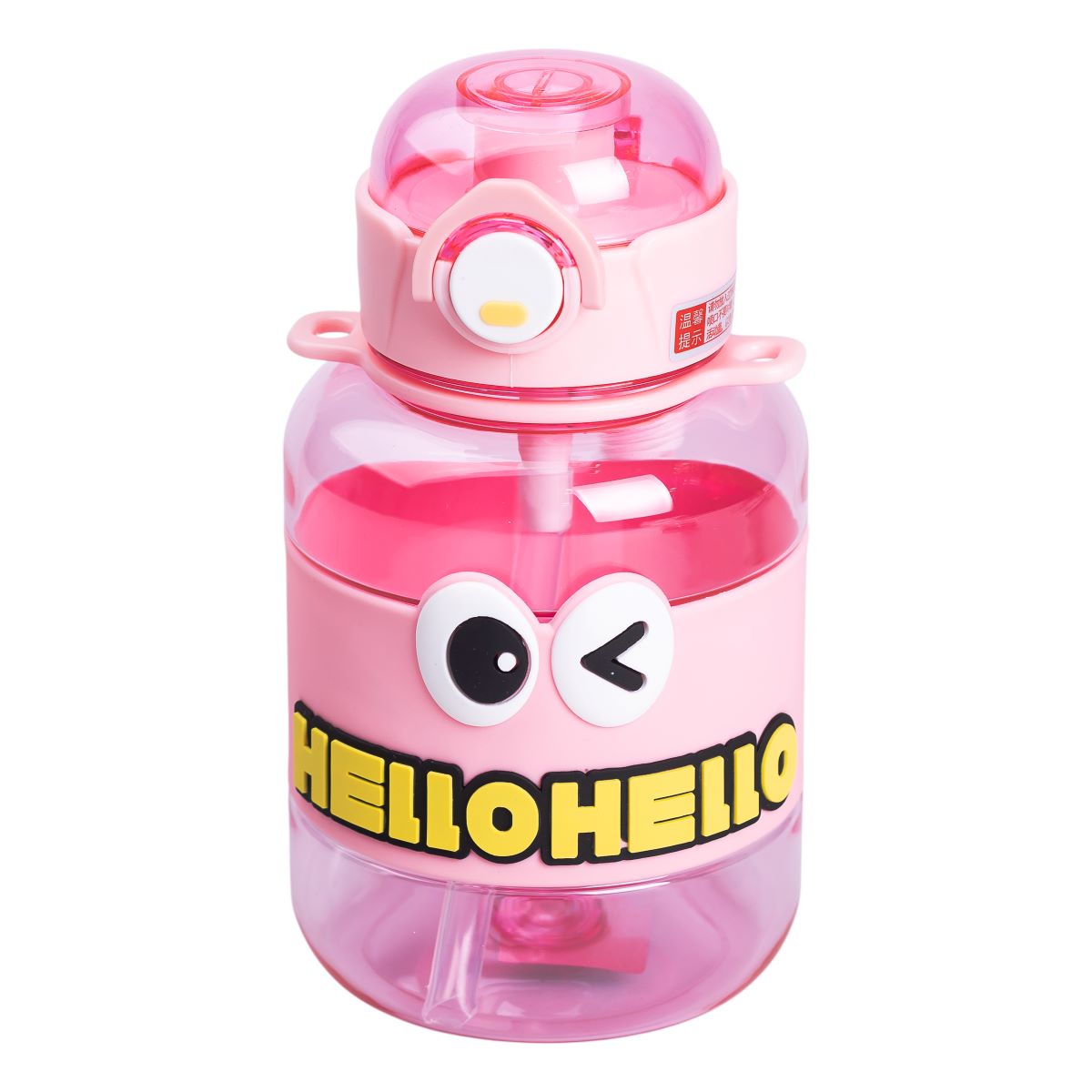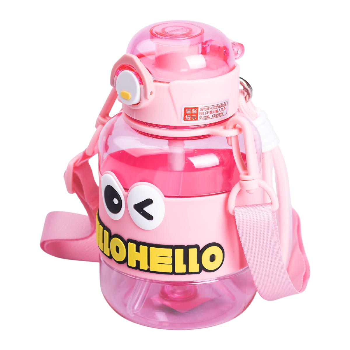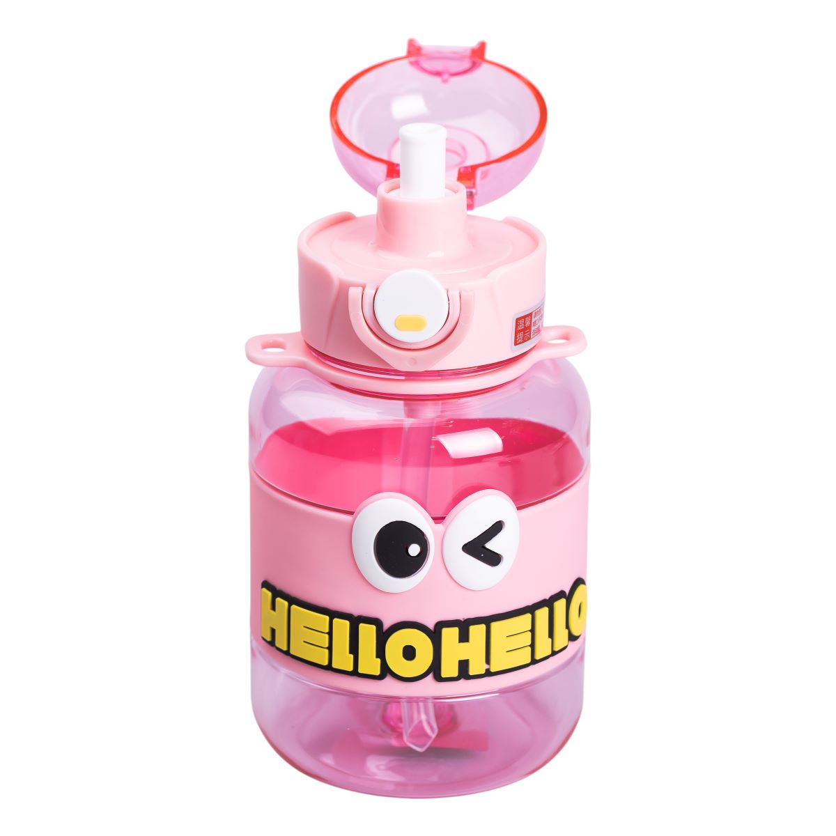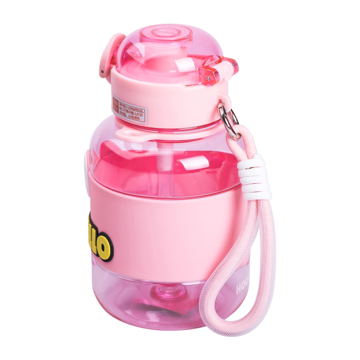 Пляшка для води дитяча з трубочкою 680 мл з ручкою та ремінцем Рожева HP-14-46P