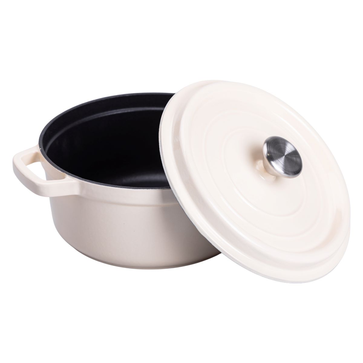 Каструля чавунна емальована 3 л з кришкою Ø24 см Бежева HP-1-3BE