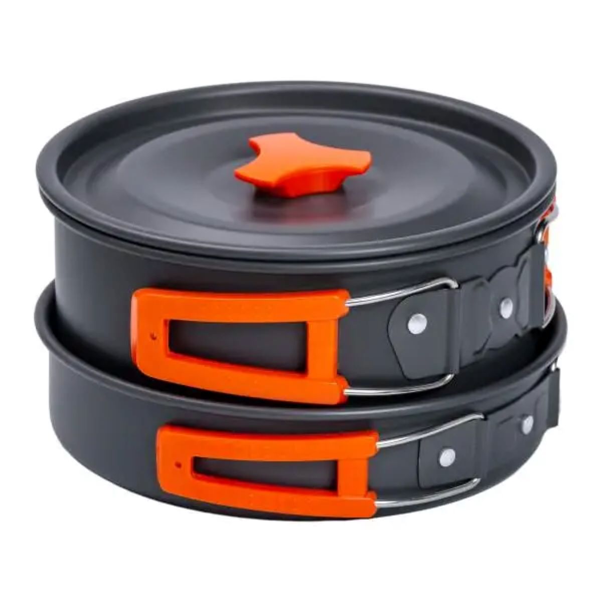 Цей набір посуду для кемпінгу у сумці виготовлений з міцного алюмінію, що забезпечує його тривале використання навіть у суворих умовах. Ідеально підходить для кемпінгу, походів та риболовлі. Завдяки складаним ручкам, посуд можна компактно скласти, розмістивши його по черзі всередині один одного. Конструкція набору за принципом неваляшки дозволяє йому займати мінімум місця, що робить транспортування зручним. Посуд легко миється у холодній воді, і весь набір важить всього 660 г. Цей набір посуду для кемпінгу є ідеальним вибором для активного відпочинку на природі, дозволяючи зручно готувати їжу та насолоджуватися трапезою у будь-яких умовах. Основні переваги набору похідного спорядження: Компактність та зручність: Легко складається, займаючи мінімум місця, і переноситься у сумці. Складна ручка: Забезпечує збереження тепла та компактне складання всередині котелка. Універсальність: Призначений для використання на відкритому вогні. Легкість догляду: Посуд легко миється у воді, навіть у похідних умовах. Характеристики набору: Каструля зі складною ручкою: Діаметр 16.5 см Висота 8,5 см. Сковорода зі складною ручкою: Діаметр 17,5 см Висота 4,0 см. Заварювальний чайник: Діаметр 14,5 см Висота 8 см.