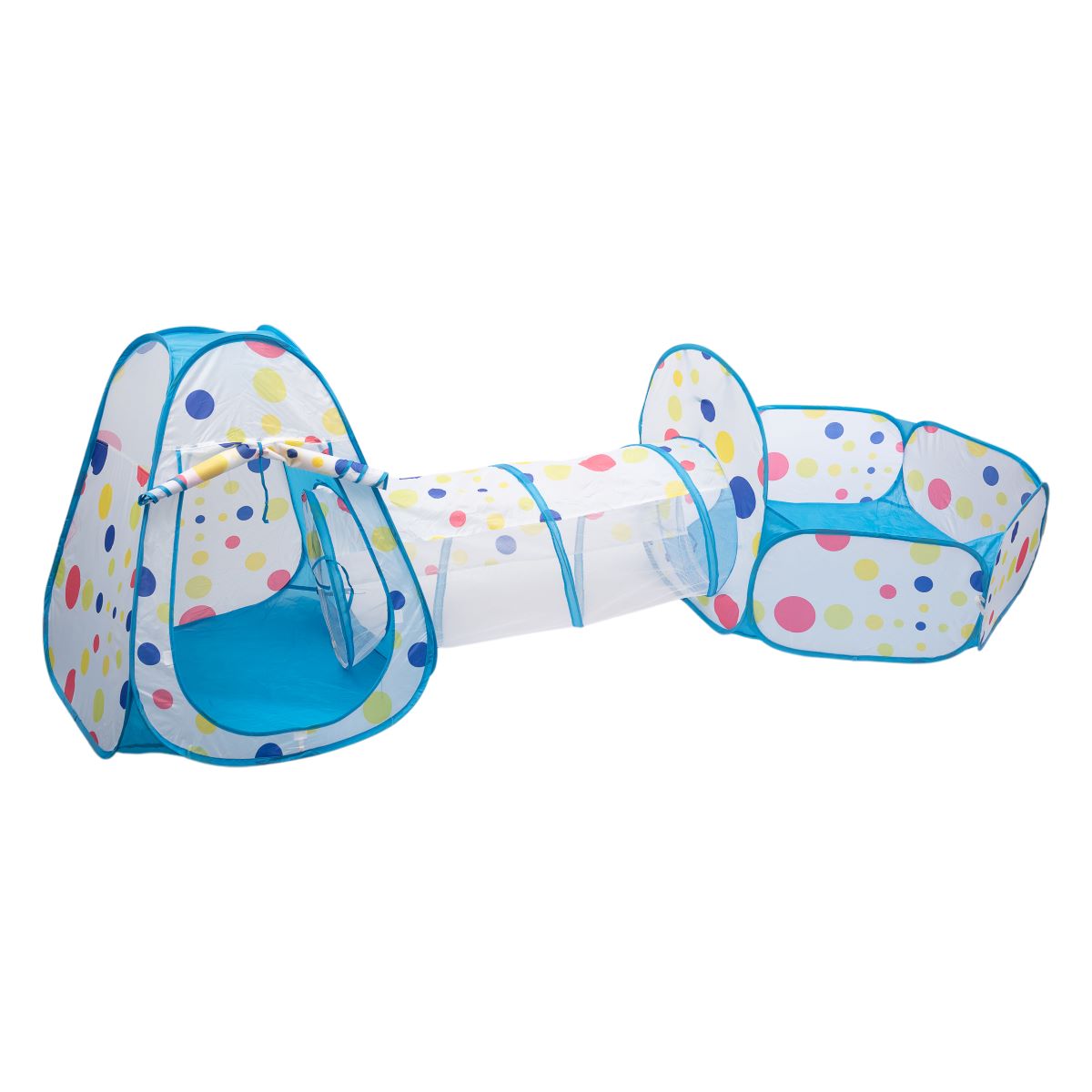 Намет дитячий 3 в 1 70×70×90 см ігровий намет з тунелем і басейном Блакитна HP-S-4NDBL