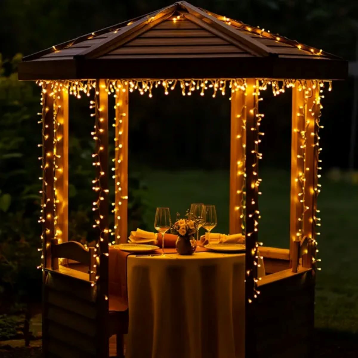 Світлодіодна новорічна гірлянда вулична із сонячною батареєю — універсальне рішення для зовнішнього та інтер’єрного декору. Вона допомагає створити святкову атмосферу та підкреслити архітектурні лінії будинку, балкону, тераси чи саду. Завдяки м’якому, рівномірному світінню гірлянда додає тепла та затишку в будь-який простір, роблячи його ошатним та привабливим. Модель оснащена зручним пультом дистанційного керування та живленням від сонячної батареї, що дозволяє використовувати її у місцях без електромережі. Основні характеристики вуличної новорічної гірлянди: Тип: новорічна гірлянда вулична із сонячною батареєю; Джерело живлення: сонячної батареї; Кількість LED: 300 шт; Загальна довжина: 30 м; Колір дроту: чорний; Відстань від вилки до першої лампочки: 1.9 м; Відстань між лампочками: 9 см; Кількість режимів: 8; Перемикання режимів: механічно або за допомогою пульта; Ступінь захисту: IP65 (вологозахист); Призначення: для зовнішнього та внутрішнього використання. Особливості світлодіодної гірлянди на вулицю: • Довжина гірлянди — 30 м, що дозволяє прикрашати великі площі. • 300 яскравих LED-лампочок забезпечують рівномірне свічення без затемнення. • Чорний провід має акуратний вигляд. • 8 режимів роботи для створення бажаного світлового ефекту. • Зручне перемикання режимів за допомогою пульта. • Може працювати від сонячної батареї — економія енергії та автономність. • Ступінь захисту IP65 — вологозахист та стійкість до погодних умов. • Енергозберігаючі світлодіоди з тривалим терміном служби. • Зручне підключення: відстань від вилки до першої лампочки – 1.9 м. • Безпека та надійність при тривалій експлуатації. Новорічна гірлянда вулична із сонячною батареєю — це поєднання естетики, практичності та довговічності. Вона стане яскравим, енергоефективним акцентом святкового або повсякденного освітлення, створюючи атмосферу затишку та свята навіть у холодну пору року.