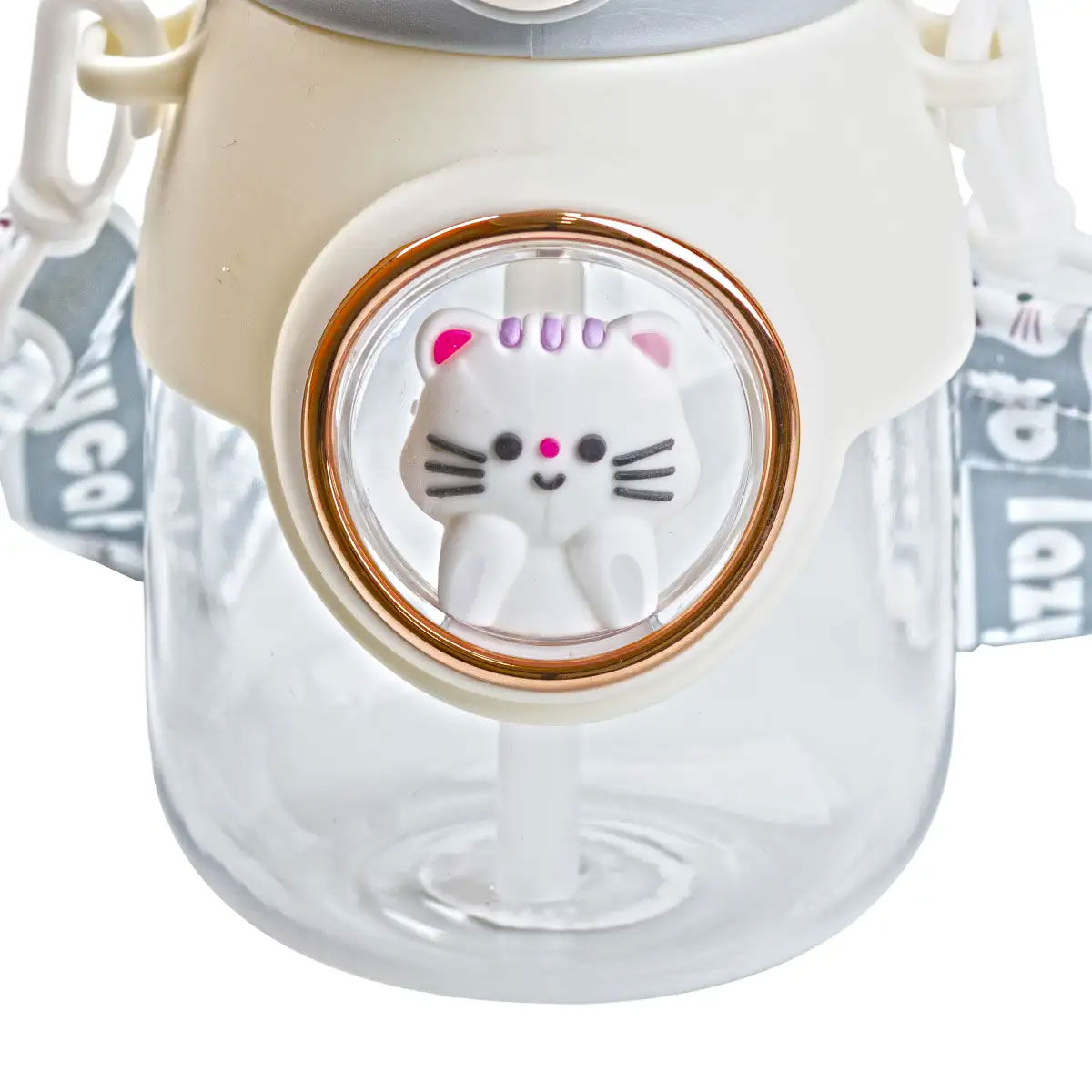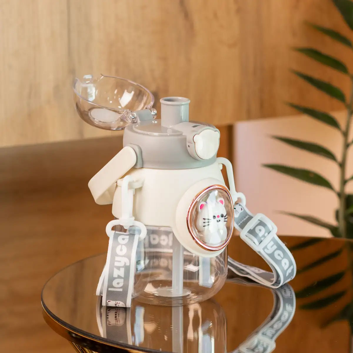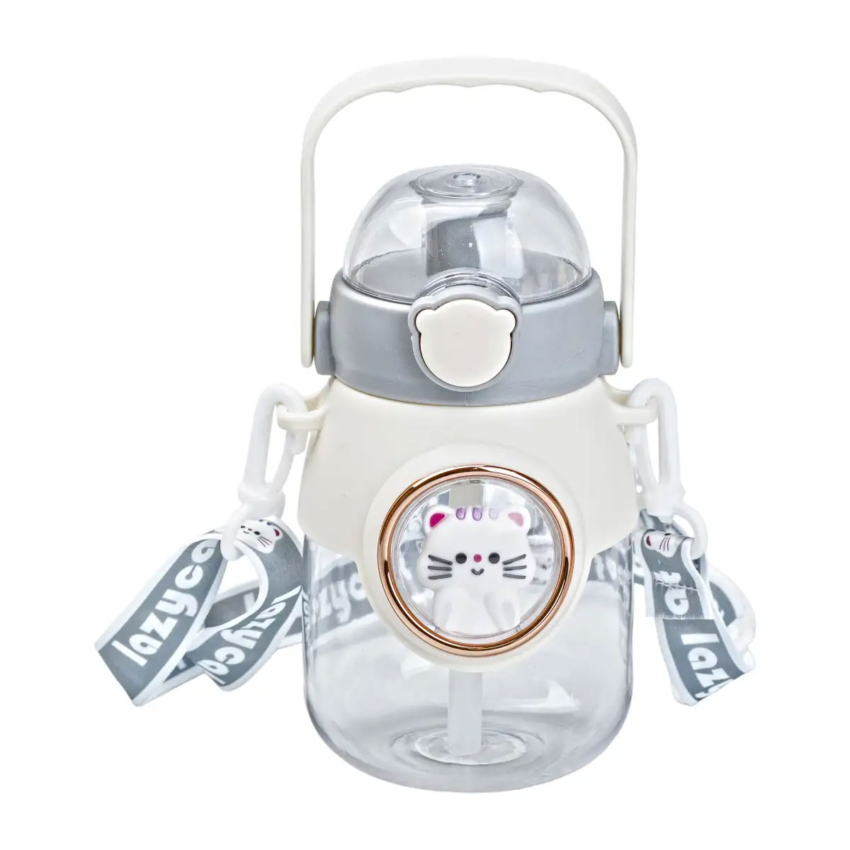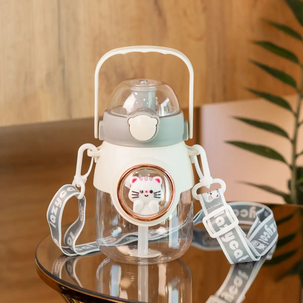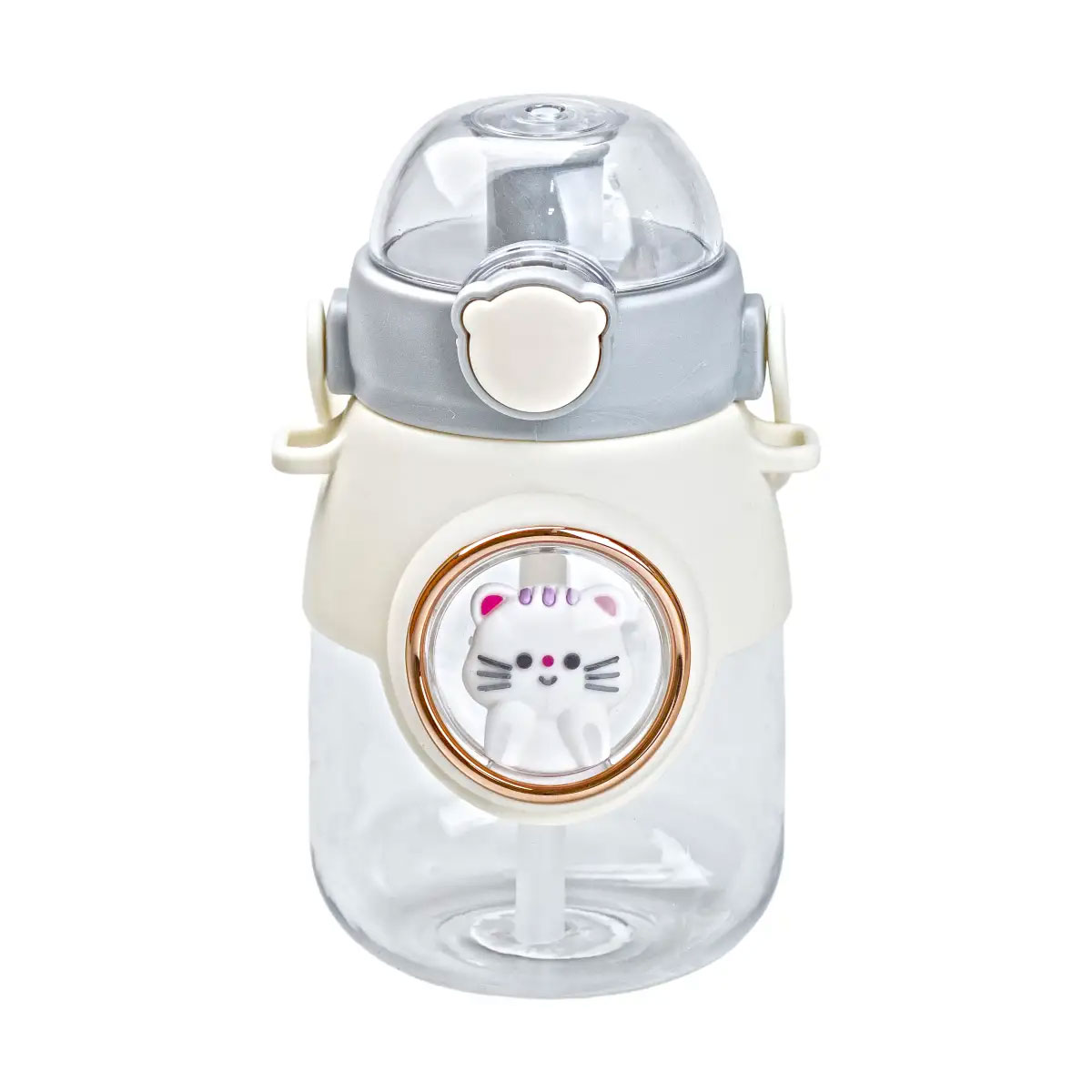 Пляшка для води з трубочкою 820 мл дитяча з ручкою та ремінцем Сірий HPGM2217G