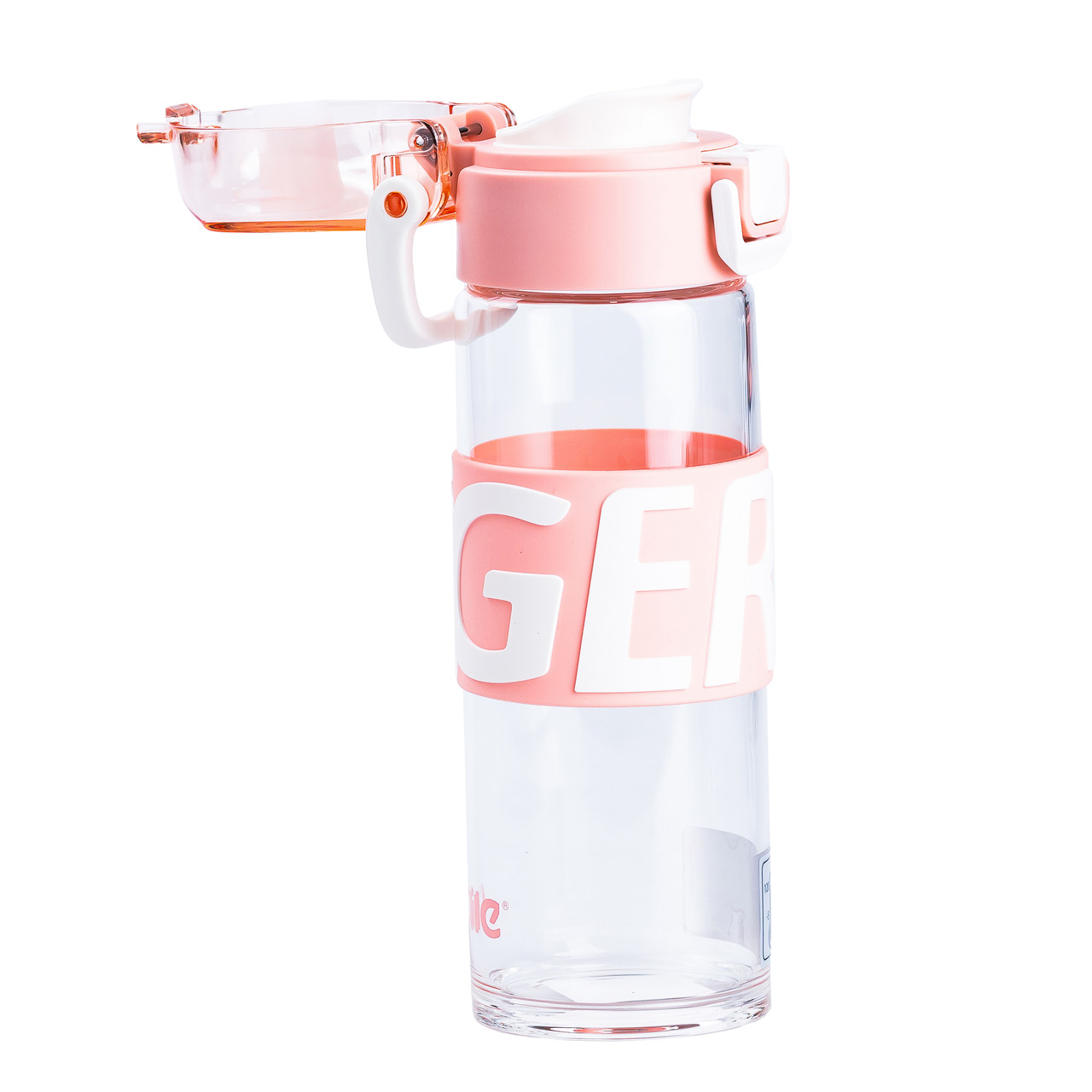 Пляшка для води 460 мл скляна з пластиковою кришкою Рожевий HP17299P