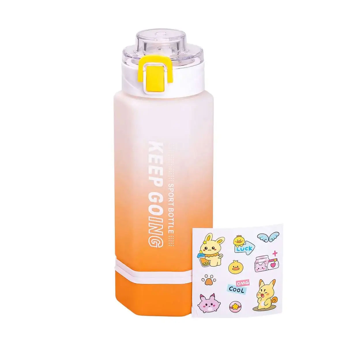 Пляшка для води – стильна, якісна та зручна у використанні. Вона неодмінно стане вашим постійним супутником та улюбленим аксесуаром. Пляшечку зручно брати на прогулянки, тренування, до школи та на роботу. В комплект входить набір яскравих наклейок із милими ілюстраціями, роблячи пляшечку особливо привабливою для дітей. Основні характеристики пляшечки об’єм 650 мл; висота 23 см; діаметр 7.5 см; додаткові функції: ремінець, наліпки у комплекті. Основні переваги пляшки Виготовлена з якісного та безпечного харчового матеріалу – тритан. Він дуже легкий і міцний, об’єднує в собі переваги пластику та скла. Цей інноваційний матеріал не такий крихкий, як звичайний пластик та скло, тому довго зберігає бездоганний зовнішній вигляд. Пляшка обладнана зручною кришкою з кнопковим механізмом, що дозволяє легко відкривати та закривати її однією рукою. Усередині кришки є герметична силіконова прокладка для запобігання протіканню. У комплект входить ремінець, зручний для перенесення та фіксації пляшечки на сумці або рюкзаку. Багаторазова пляшка для води – це універсальний та практичний аксесуар, який ідеально підійде для любителів активного відпочинку, мандрівників та просто тих, хто хоче завжди мати під рукою улюблений напій.