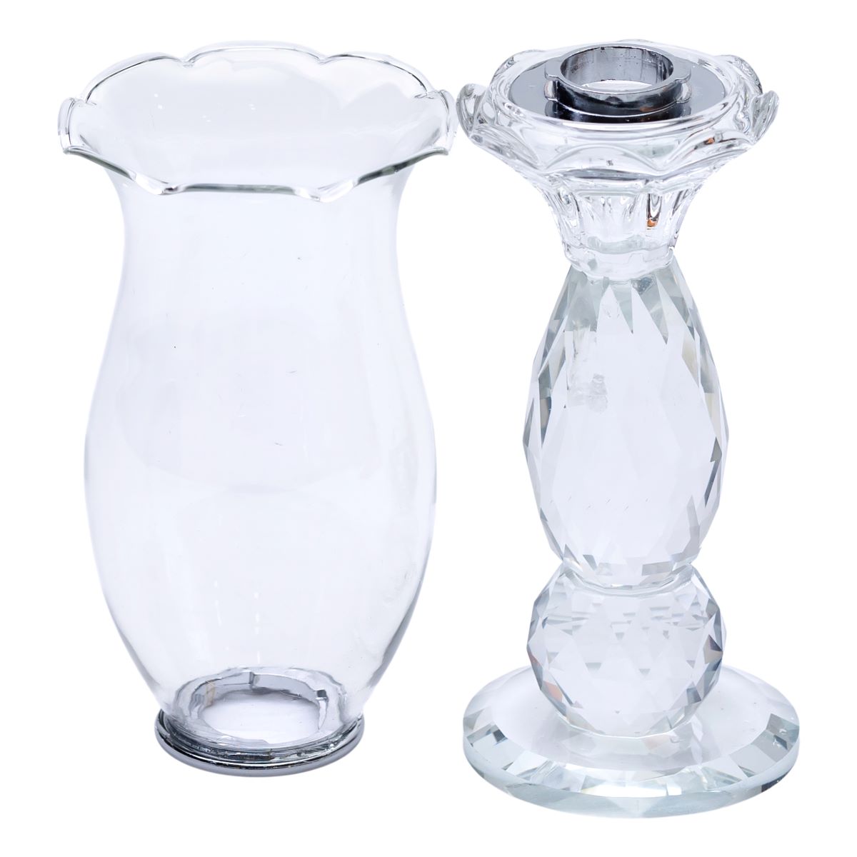 Цей свічник виконаний з гладкого і якісного скла, що надає йому особливо легкий і повітряний вигляд. Його витончена форма поєднується з класичним стилем, а прозорість робить його універсальним елементом декору для будь-якого інтер’єру. Ніжка свічника складена з двох скляних сфер, які з’єднані між собою і плавно переходять у стійку круглу основу. Уся конструкція має цілісний, гармонійний і витончений вигляд. Верхня частина – це високий скляний плафон з хвилеподібним краєм, який нагадує пелюстки квітки і красиво розсіює світло. Основні характеристики: Матеріал: скло; Висота: 27.5 см; Діаметр основи: 7 см; Діаметр під свічку: 5 см; Глибина: 11 см; Колір: прозорий. Для чого підійде? Декор будинку – витончений елемент для вітальні, спальні або обідньої зони. Романтична атмосфера – м’яке мерехтливе полум’я в поєднанні з вишуканим склом створить теплий затишок. Сервірування столу – відмінно впишеться в святкове оздоблення, чи то весілля, чи то ювілей, чи то новорічна вечеря. Подарунок – стильний вибір для любителів витонченого інтер’єру.