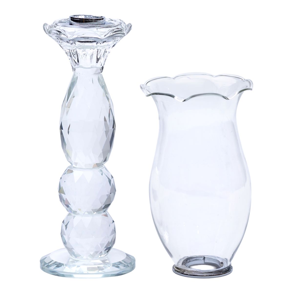 Цей свічник виконаний з гладкого і якісного скла, що надає йому особливо легкий і повітряний вигляд. Його витончена форма поєднується з класичним стилем, а прозорість робить його універсальним елементом декору для будь-якого інтер’єру. Ніжка свічника складена з двох скляних сфер, які з’єднані між собою і плавно переходять у стійку круглу основу. Уся конструкція має цілісний, гармонійний і витончений вигляд. Верхня частина – це високий скляний плафон з хвилеподібним краєм, який нагадує пелюстки квітки і красиво розсіює світло. Основні характеристики: Матеріал: скло; Висота: 31.5 см; Діаметр основи: 7 см; Діаметр під свічку: 5 см; Глибина: 11 см; Колір: прозорий. Для чого підійде? Декор будинку – витончений елемент для вітальні, спальні або обідньої зони. Романтична атмосфера – м’яке мерехтливе полум’я в поєднанні з вишуканим склом створить теплий затишок. Сервірування столу – відмінно впишеться в святкове оздоблення, чи то весілля, чи то ювілей, чи то новорічна вечеря. Подарунок – стильний вибір для любителів витонченого інтер’єру.
