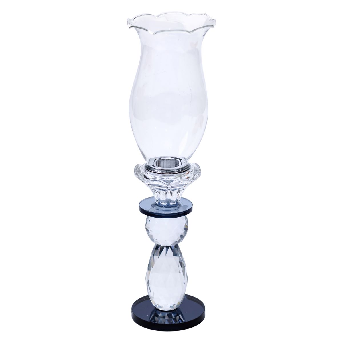 Верхня частина підсвічника виконана з прозорого скла і має хвилеподібний край, який надає йому елегантності та витонченості. Такий дизайн не тільки додає легкості, а й сприяє м’якому розсіюванню світла, створюючи теплу і затишну атмосферу. Основні характеристики: Матеріал: скло; Висота: 29 см; Діаметр підставки: 7 см; Діаметр під свічку: 5 см; Глибина: 11 см; Колір: прозорий з чорними акцентами. Для чого підійде? Декор будинку – витончений елемент для вітальні, спальні або обідньої зони. Романтична атмосфера – м’яке мерехтливе полум’я в поєднанні з вишуканим склом створить теплий затишок. Сервірування столу – відмінно впишеться в святкове оздоблення, чи то весілля, чи то ювілей, чи то новорічна вечеря. Подарунок – стильний вибір для любителів витонченого інтер’єру.