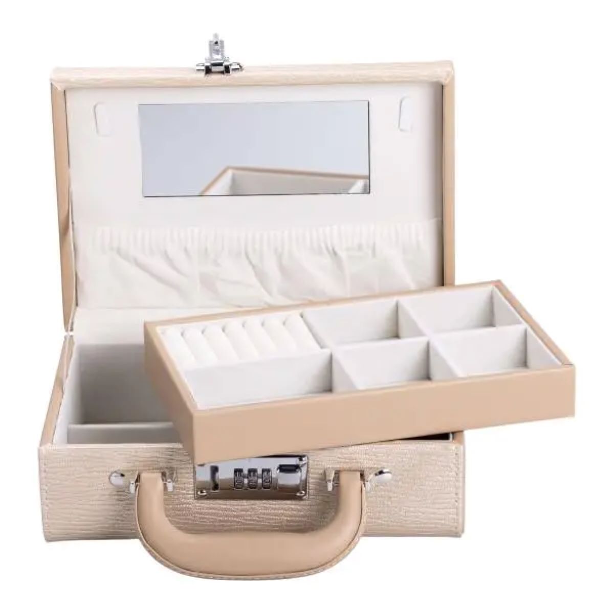 Скринька для прикрас з еко шкіри 2 яруси з кодовим замком органайзер для ювелірних виробів HP-5-24CR