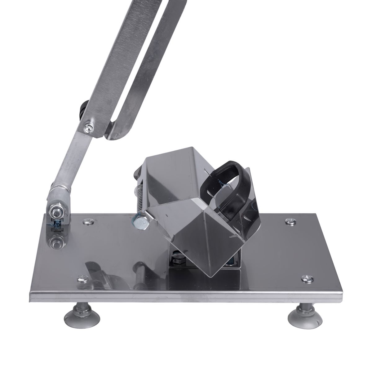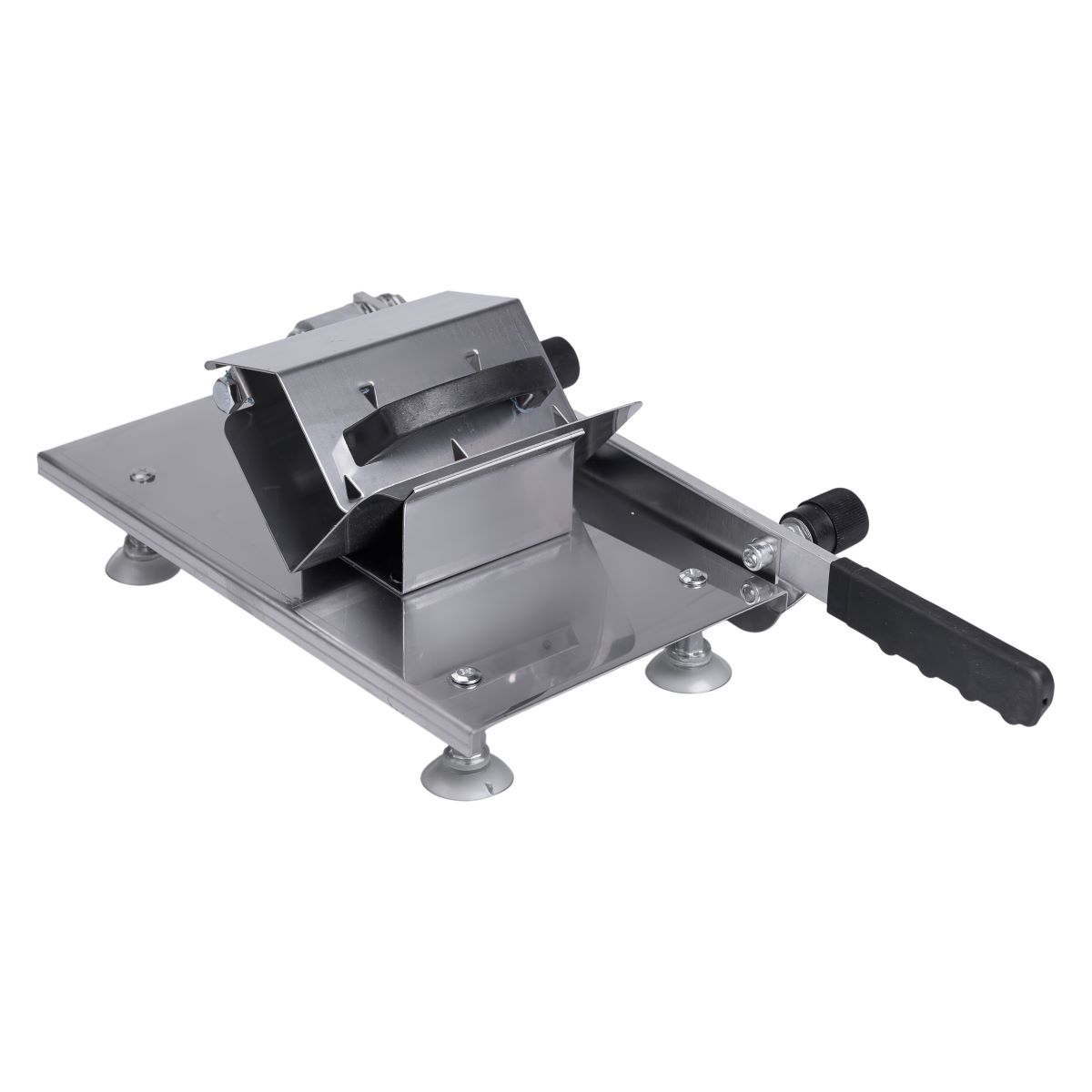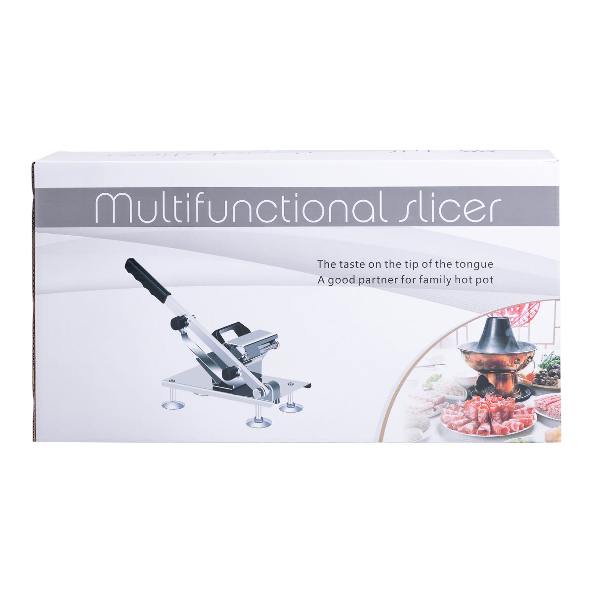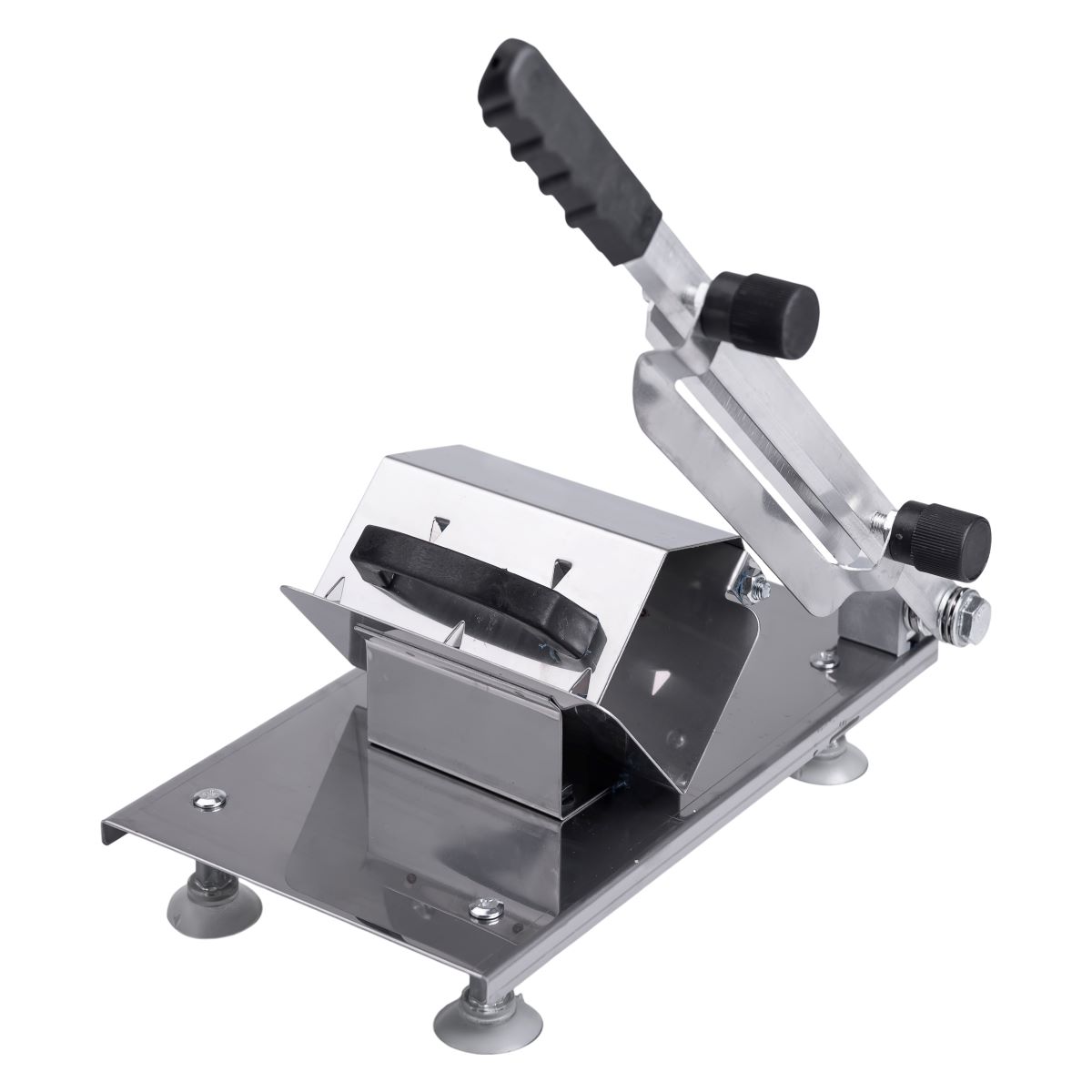 Ручний слайсер – це високоякісний інструмент для нарізки м’ясних, ковбасних та сирних виробів, виготовлений з нержавіючої сталі. Слайсер стане незамінним помічником на кухні, надаючи зручність та точність при нарізуванні продуктів. Ідеально підходить як для домашнього використання, так і для невеликих підприємств, де важлива швидкість та якість роботи. Основні характеристики: Розміри: 46 х 17 х 7 см; Довжина ножа: 18 см; Матеріал ножа: нержавіюча сталь; Матеріал: нержавіюча сталь. Основні переваги: Простота використання: Слайсер має зручну конструкцію, що дозволяє легко керувати пристроєм та швидко налаштовувати товщину нарізки. Універсальність: Він підходить для нарізки не тільки м’яса та ковбас, але й сиру, риби, овочів та інших продуктів. Це робить його функціональним інструментом на кухні. Довговічність та надійність: Корпус та ніж виконані з нержавіючої сталі, що забезпечує слайсеру довгий термін служби та легкість у догляді. Сталь не піддається корозії та зберігає свою гостроту тривалий час. Легкість в обслуговуванні: Після використання слайсер легко миється, що дозволяє підтримувати його в ідеальній чистоті та дотримуватись усіх гігієнічних норм. Простота розбирання пристрою робить догляд ще зручнішим. Ручний слайсер – це надійний та ефективний інструмент для тих, хто цінує якість та зручність. Його міцна конструкція з нержавіючої сталі, зручність у використанні та універсальність роблять його чудовим вибором для домашньої кухні чи невеликого бізнесу. З цим слайсером процес нарізки стане легким та швидким, а продукти завжди будуть нарізані точно та акуратно.
