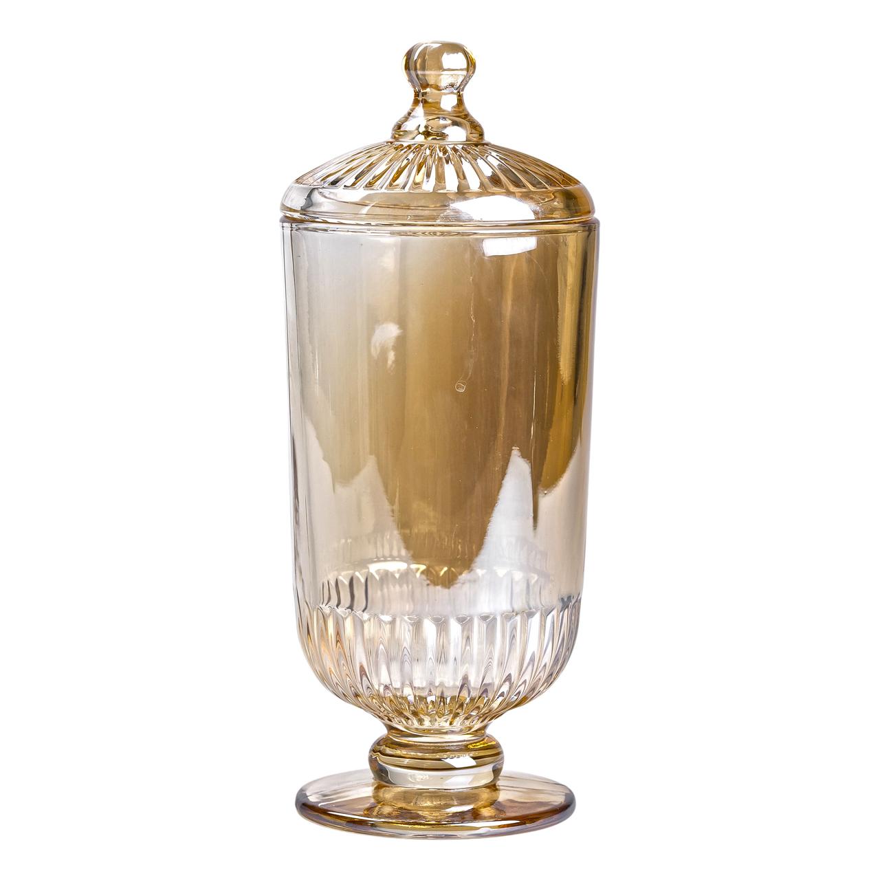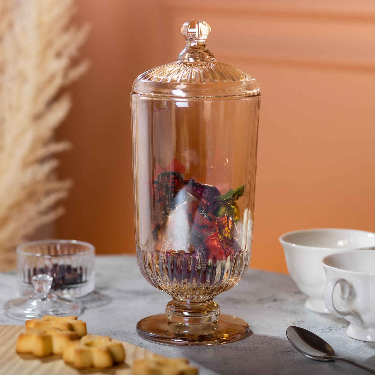 Ця витончена скляна цукерниця з кришкою стане прекрасним доповненням до вашого інтер’єру. Виготовлена з прозорого скла, вона дає змогу елегантно продемонструвати улюблені солодощі, горіхи або інші частування. Завдяки мінімалістичному дизайну та універсальній формі, цукерниця підходить як для святкових подій, так і для повсякденного користування. Основні характеристики: Матеріал: скло; Діаметр: 10 см; Висота: 24.5 см. Завдяки висоті 24.5 см і діаметру 10 см, виріб є досить містким, щоб вмістити достатньо частувань, але залишається компактним для зручного розташування на столі або полиці. Кришка зберігає свіжість і захищає вміст від пилу, що робить цукерницю не тільки естетично привабливою, а й практичною. Скляна структура виробу забезпечує легкий догляд і тривалий термін служби. Така цукерниця стане не тільки чудовим елементом декору, а й оригінальним подарунком для близьких, додаючи нотки витонченості будь-якому будинку.