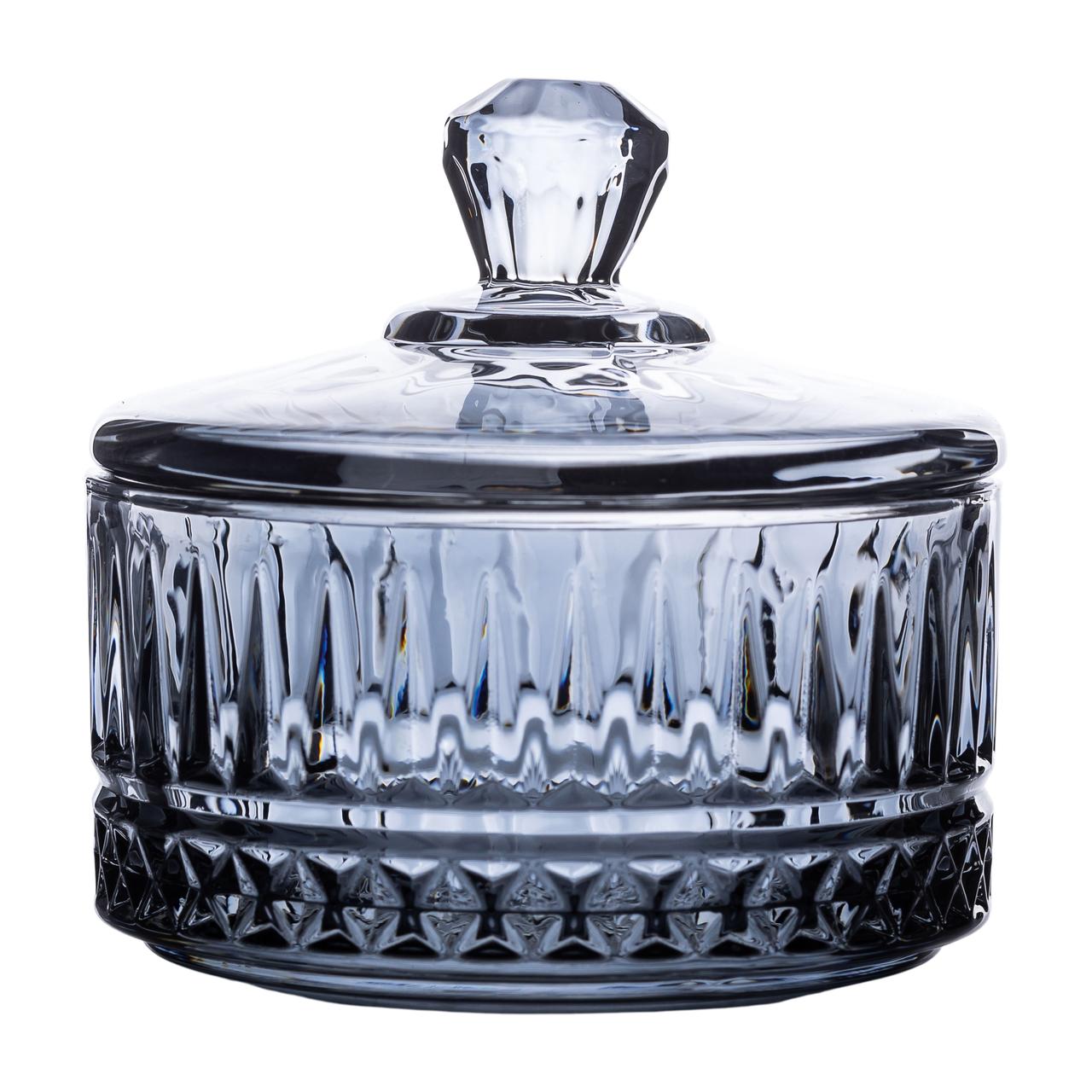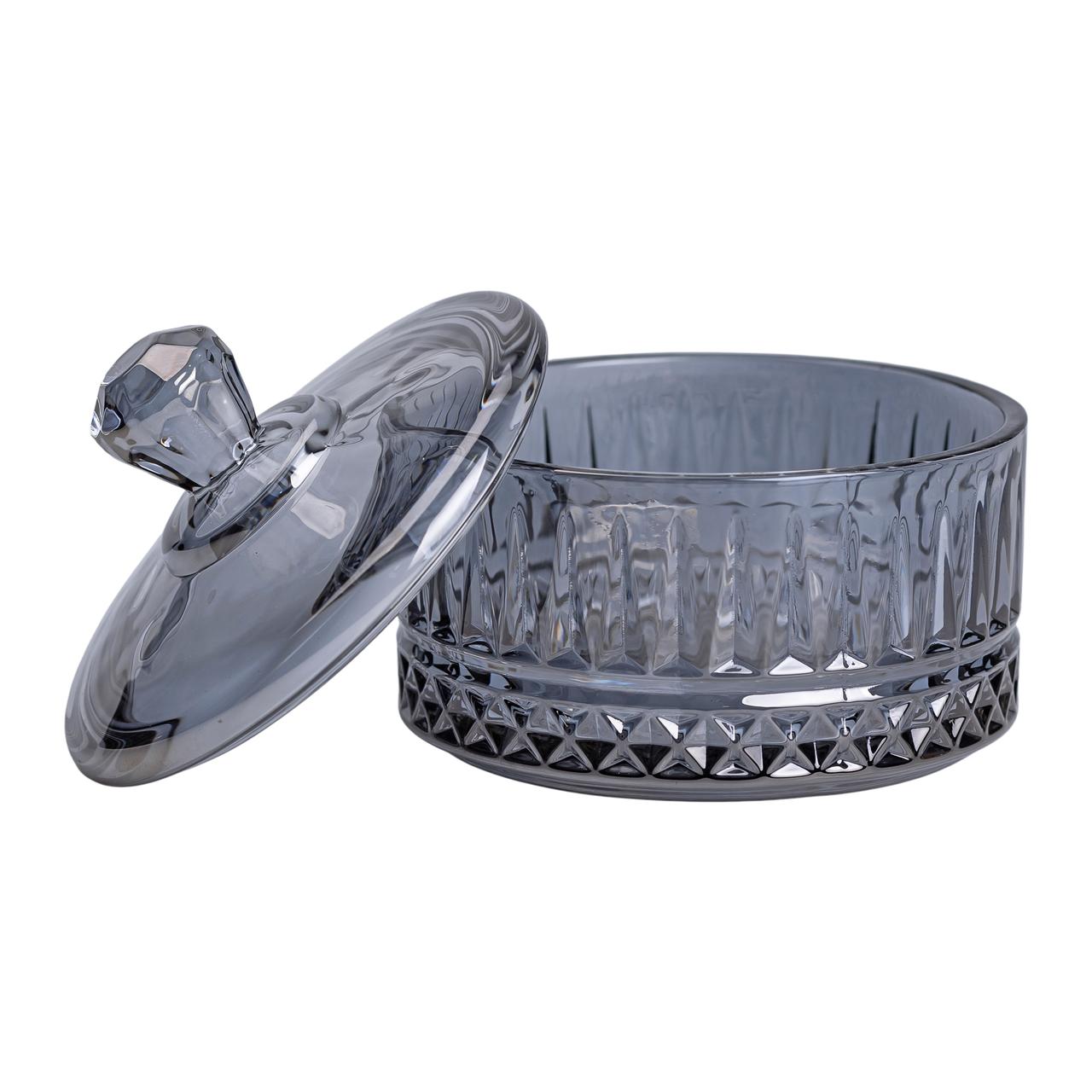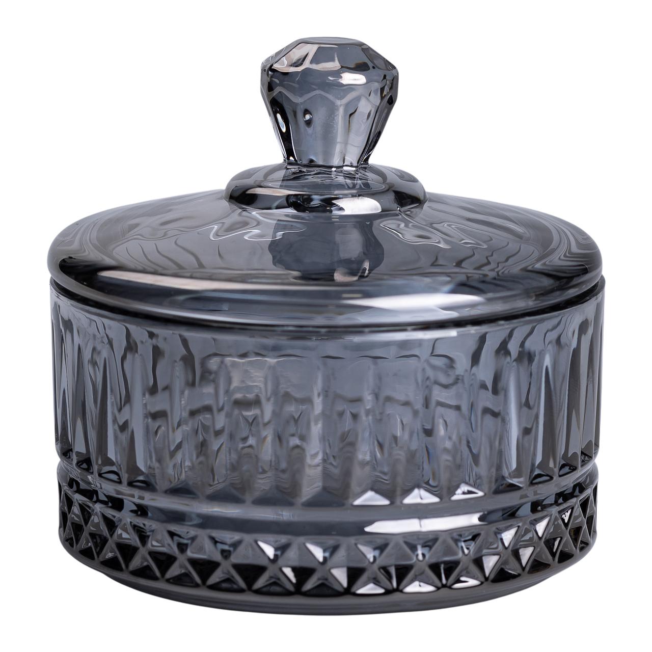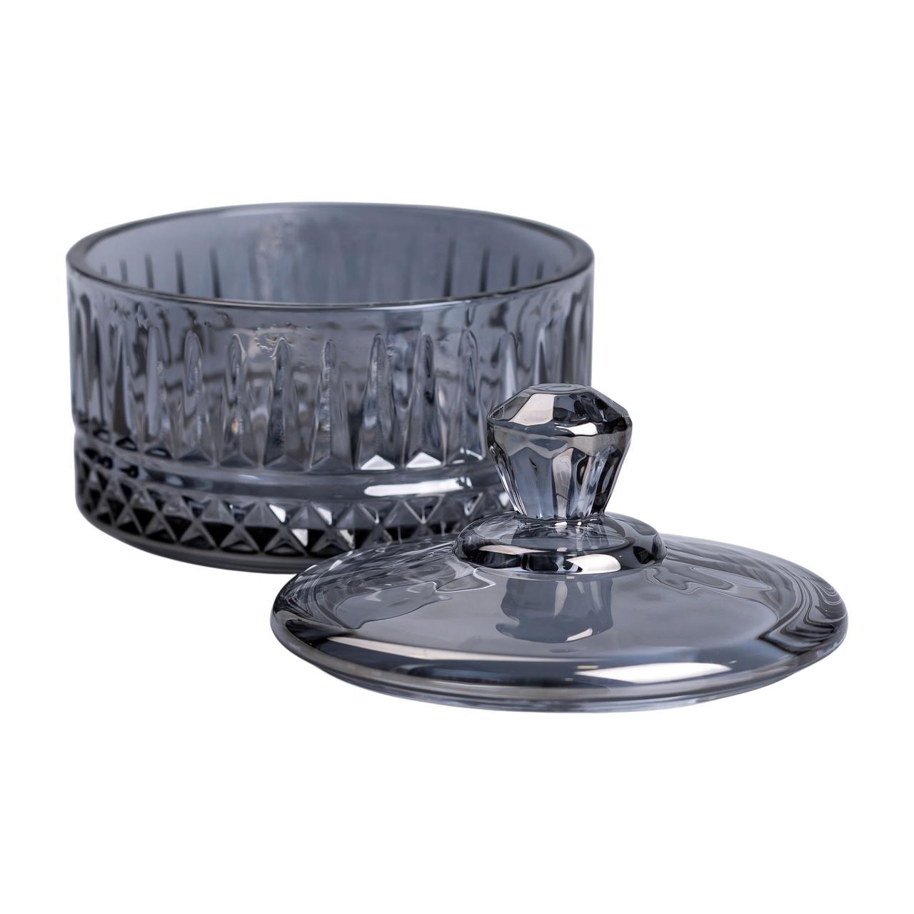 Цукерниця з кришкою Ø 10 см скляна Сіра HP-YH-78