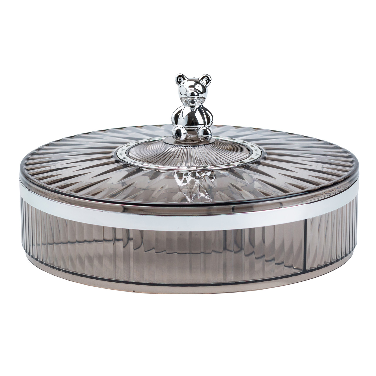 Цукерниця пластикова на 4 відділення круглая 26 см Сіра HP48629S