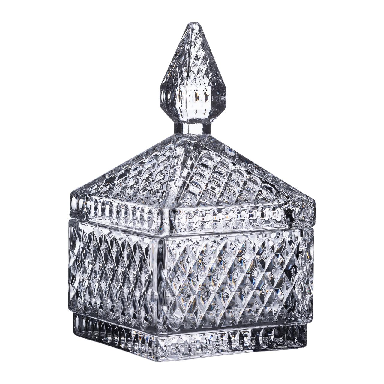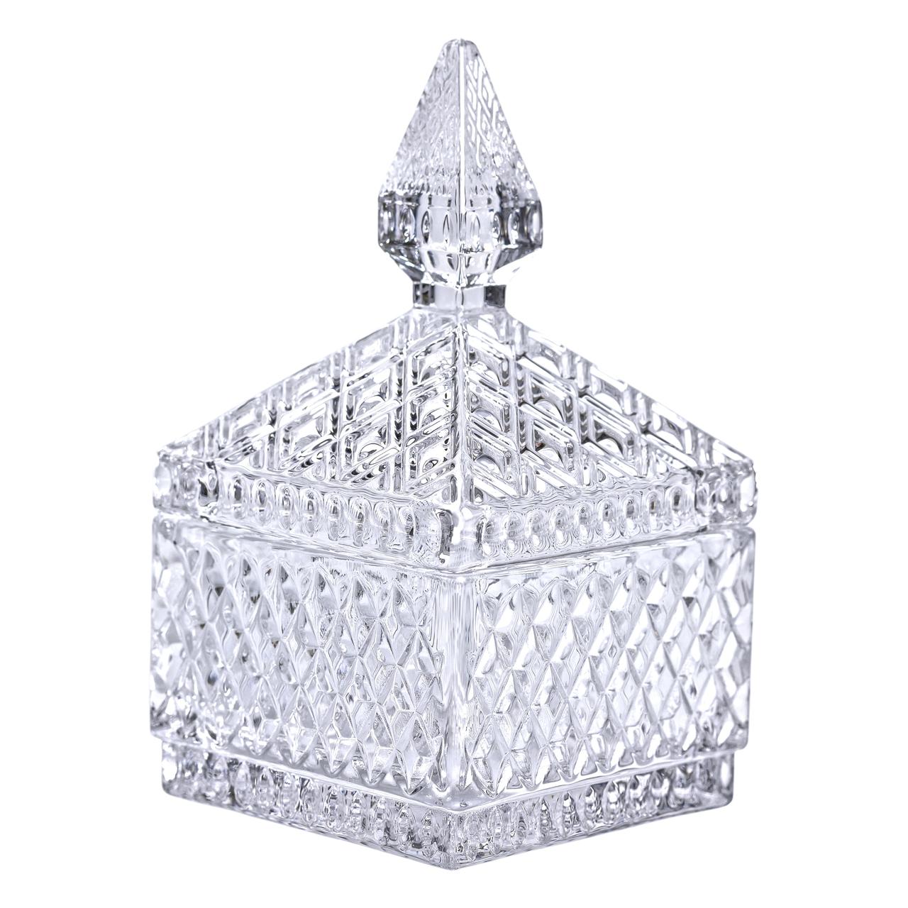 Цукерниця скляна з кришкою 8.5х8.5х15 см квадратна HP-YH-27