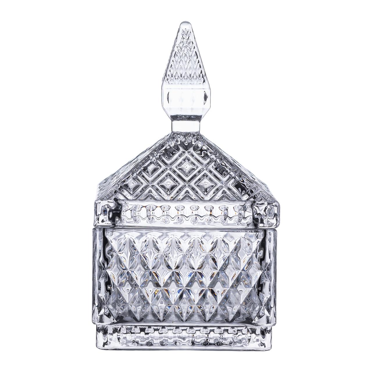 Скляна цукерниця з кришкою із скла у східному стилі — це вишуканий аксесуар, який гармонійно поєднує елегантність і функціональність. Її дизайн натхненний східними мотивами, що додає витонченості та екзотичного шарму. Прозоре скло забезпечує вишуканий блиск і підкреслює красу солодощів або інших частувань, які в ній зберігаються. Основні характеристики: Матеріал: скло; Довжина: 8 см; Ширина: 8.5 см; Висота: 15 см. Завдяки висоті 15 см, ця цукерниця чудово підходить для подачі цукерок, печива чи інших дрібних ласощів. Кришка забезпечує збереження свіжості вмісту, а міцний матеріал гарантує довговічність. Така цукерниця стане окрасою будь-якого святкового столу або інтер’єру, а також чудовим подарунком для цінителів стильного посуду.