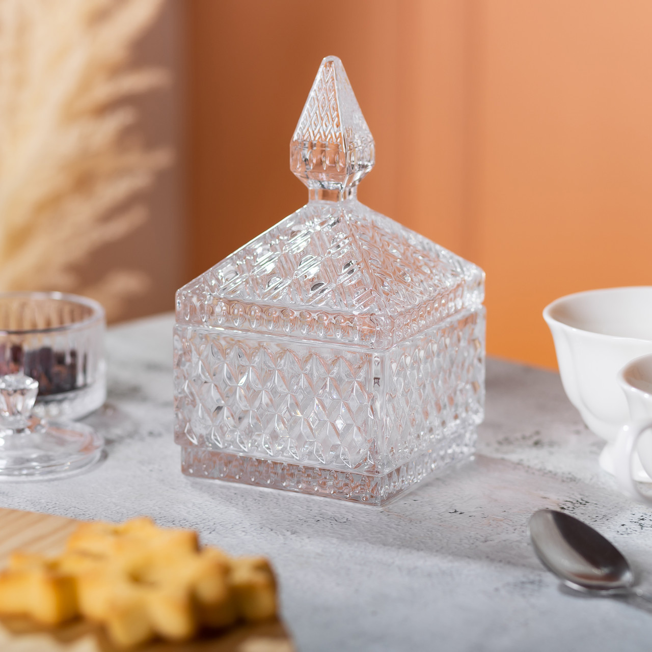 Цукерниця скляна з кришкою 8.5х8.5х15 см квадратна HP-YH-41