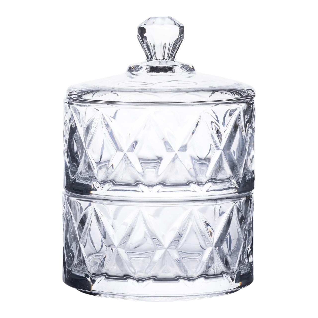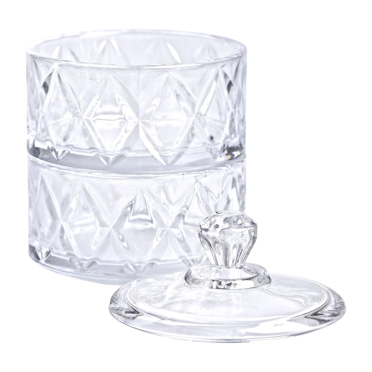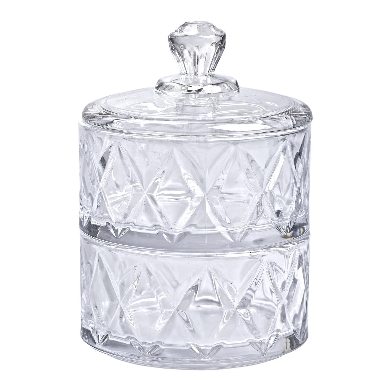 Цукерниця скляна з кришкою Ø 10 см дворівнева HP-YH-79