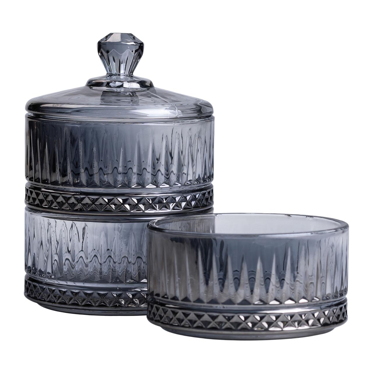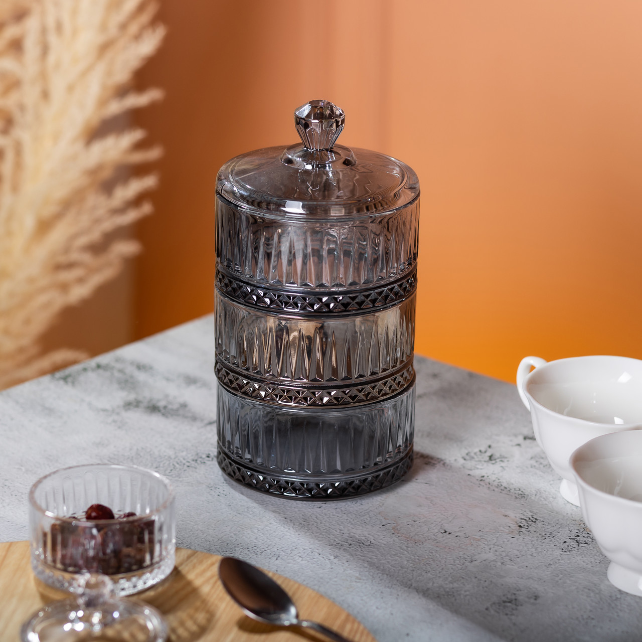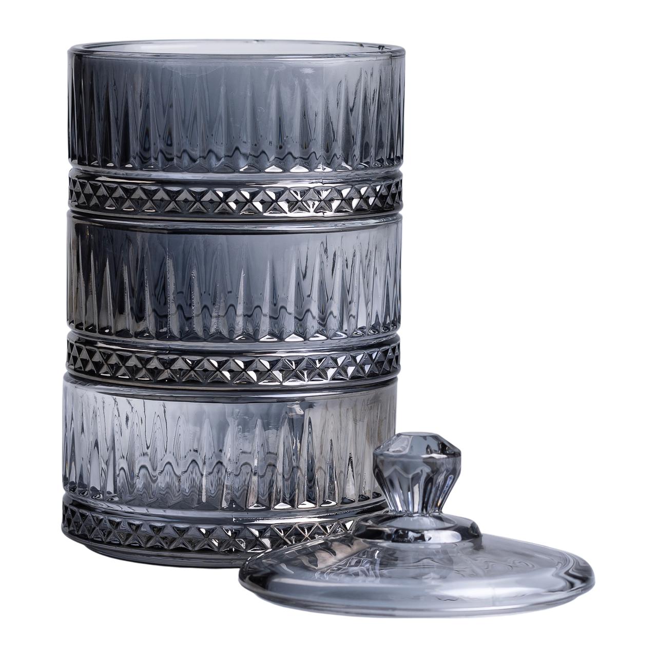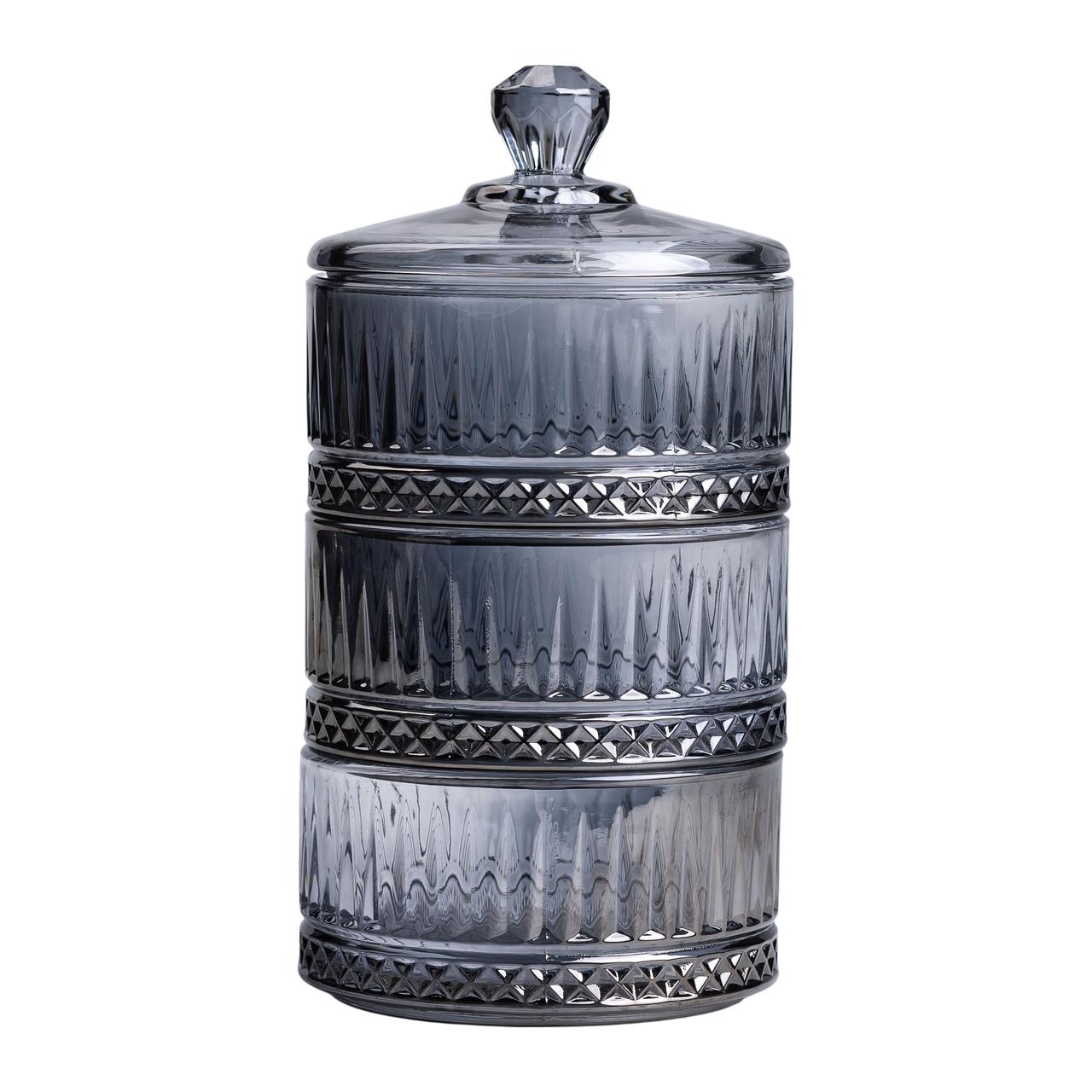 Цукерниця трирівнева скляна з кришкою Ø 10 см Сіра HP-YH-76