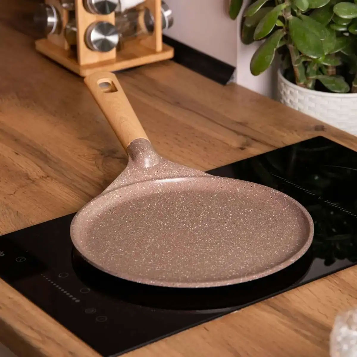 Алюмінієва млинцева сковорода з мармуровим антипригарним покриттям Ø 28 см, товсте дно MGC кавового кольору HP-4-430CO