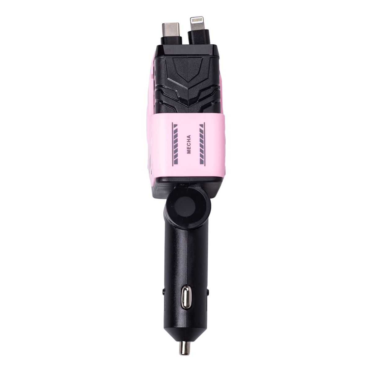 Автомобільний зарядний пристрій MECHA з висувними кабелями та портами USB/Type-C Рожевий HP-A1P