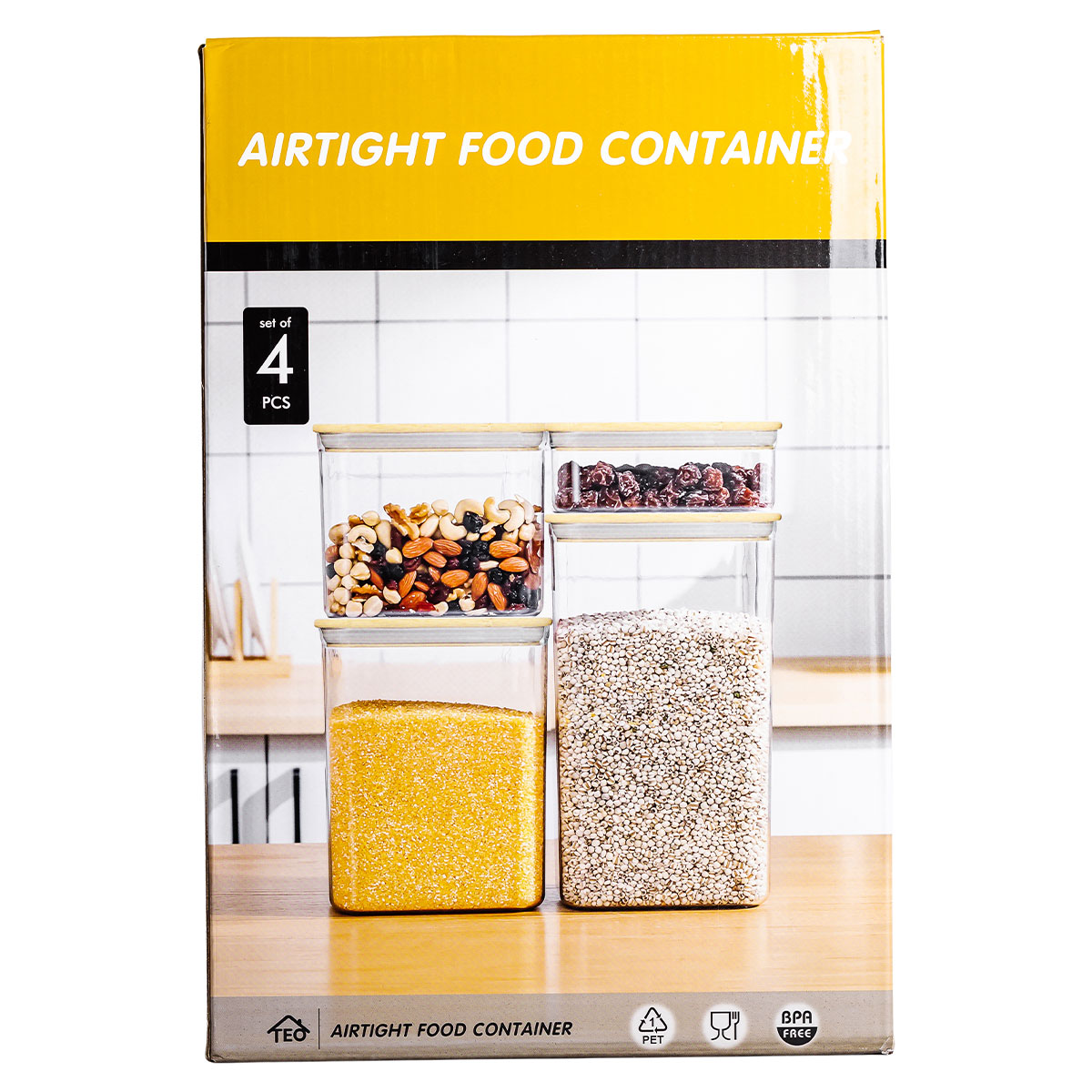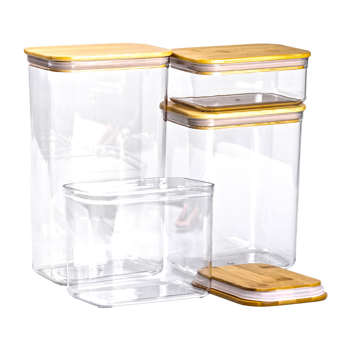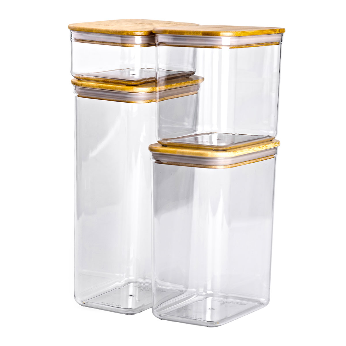 Банки для сипучих продуктів набір із 4 шт пластикові з бамбуковими кришками HP-1302
