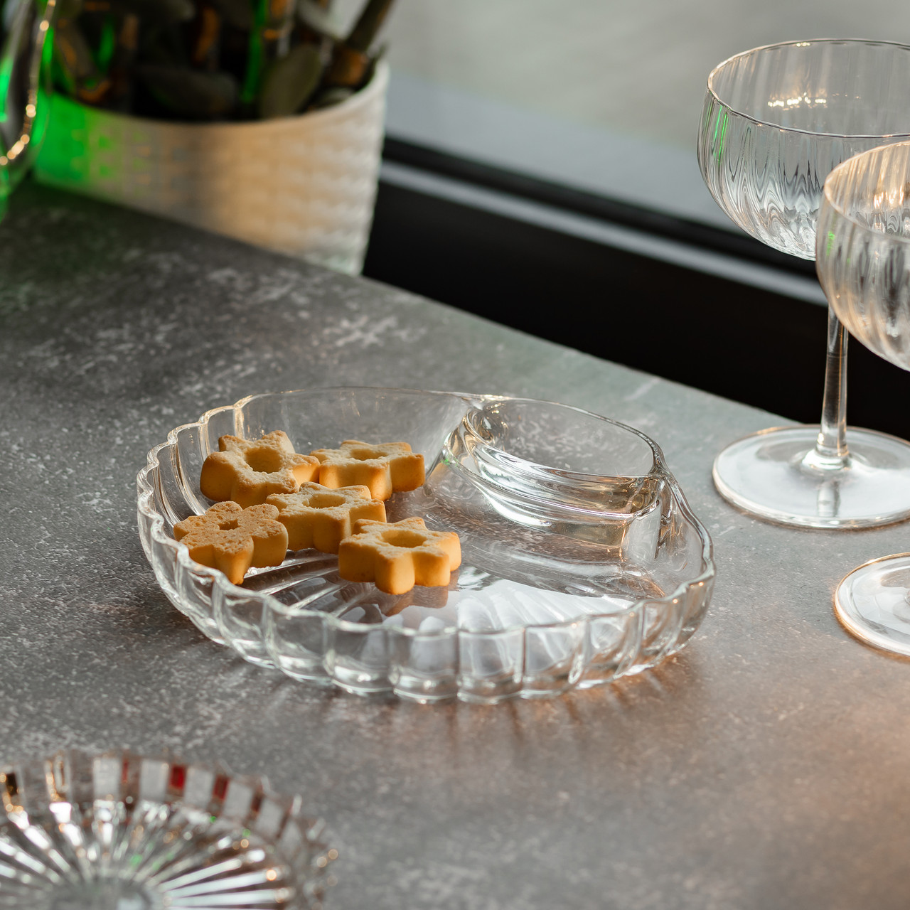 Блюдо сервірувальне для закусок із соусником 21х19х3 см скляне HP-YH-58