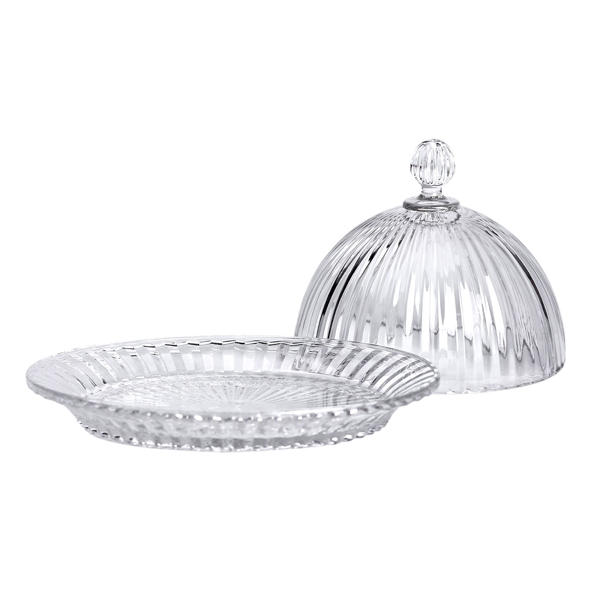 Блюдо сервірувальне з кришкою Ø 20 см скляне прозоре для десертів, випічки, фруктів HP-YH-43