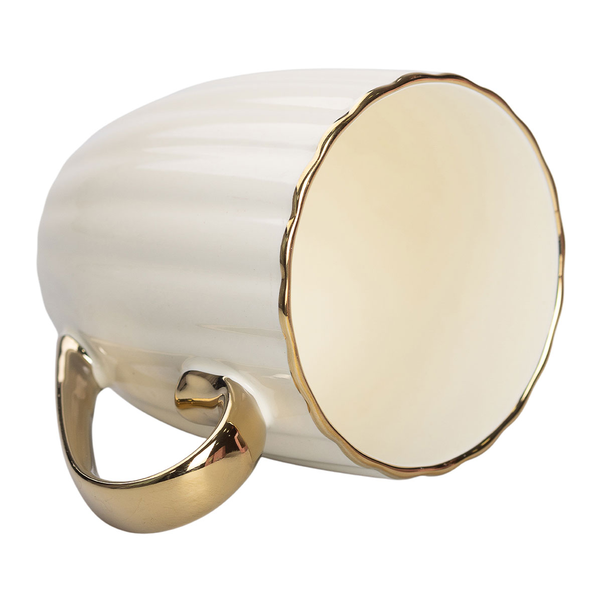 Чашка порцелянова із золотим обідком і золотою ручкою 420 (мл) Бежева RX-N240629BE