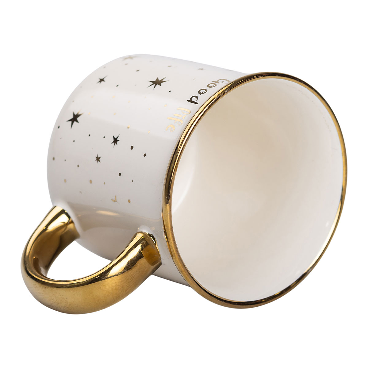 Чашка порцелянова із золотим обідком та позолоченою ручкою 320 (мл) Good life Біла RX-N231506W