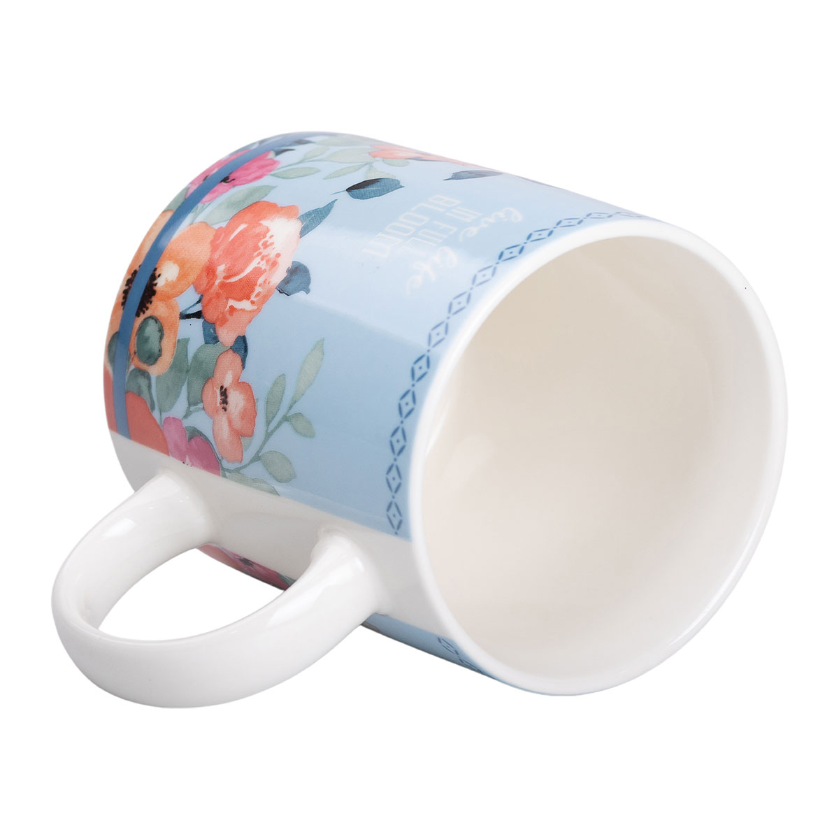 Чашка порцелянова з квітковим принтом 400 (мл) для чаю та кави Блакитна RX-N240139BL