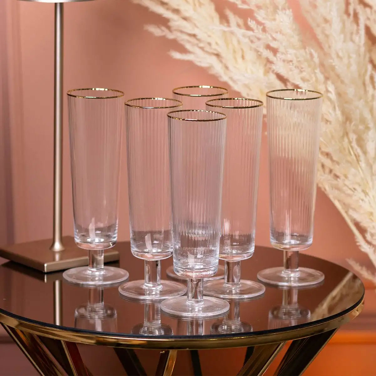 Келихи для шампанського із золотою облямівкою 6 штук по 300 мл HP82