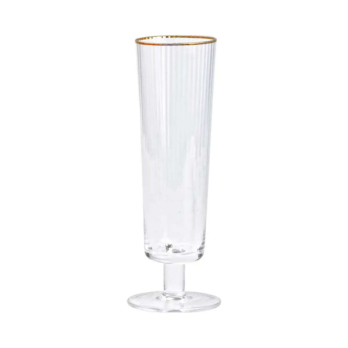 Скляні келихи для шампанського вирізняються стильним вінтажним дизайном і елегантною ребристою поверхнею. Виготовлені з безсвинцевого скла високої якості, вони не вбирають запахи і не змінюють смак напою. Ребристий дизайн не тільки підкреслює їх красу, але й покращує аромат шампанського, допомагаючи розкрити його смакові нотки. Ці келихи ідеально підходять для святкового сервірування і можуть бути легко очищені у посудомийній машині. Для ручного миття рекомендується використовувати неабразивні мийні засоби та м’які губки, щоб зберегти їх вигляд на довгі роки. Характеристики: Висота: 20 см Діаметр: 7,5 см Об’єм: 300 мл Матеріал: Безсвинцеве скло Можна мити в посудомийній машині: Так