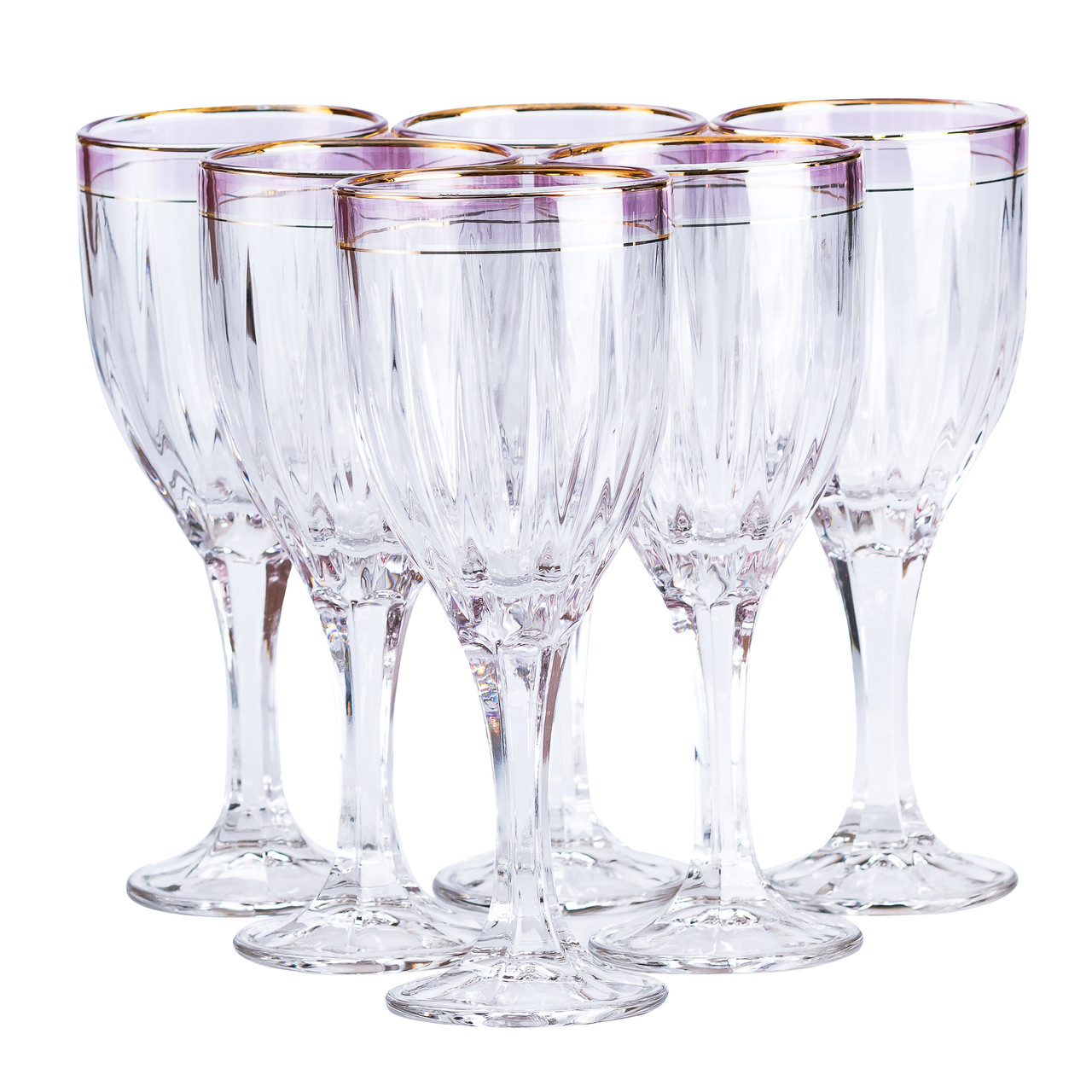 Келихи для вина із золотою облямівкою 6 шт по 250 мл Рожевий HP548