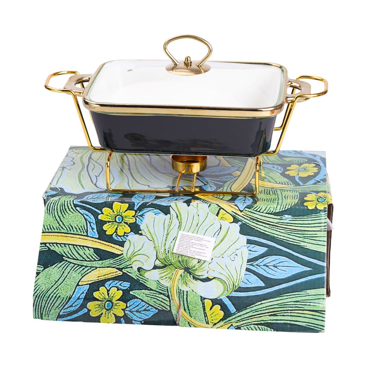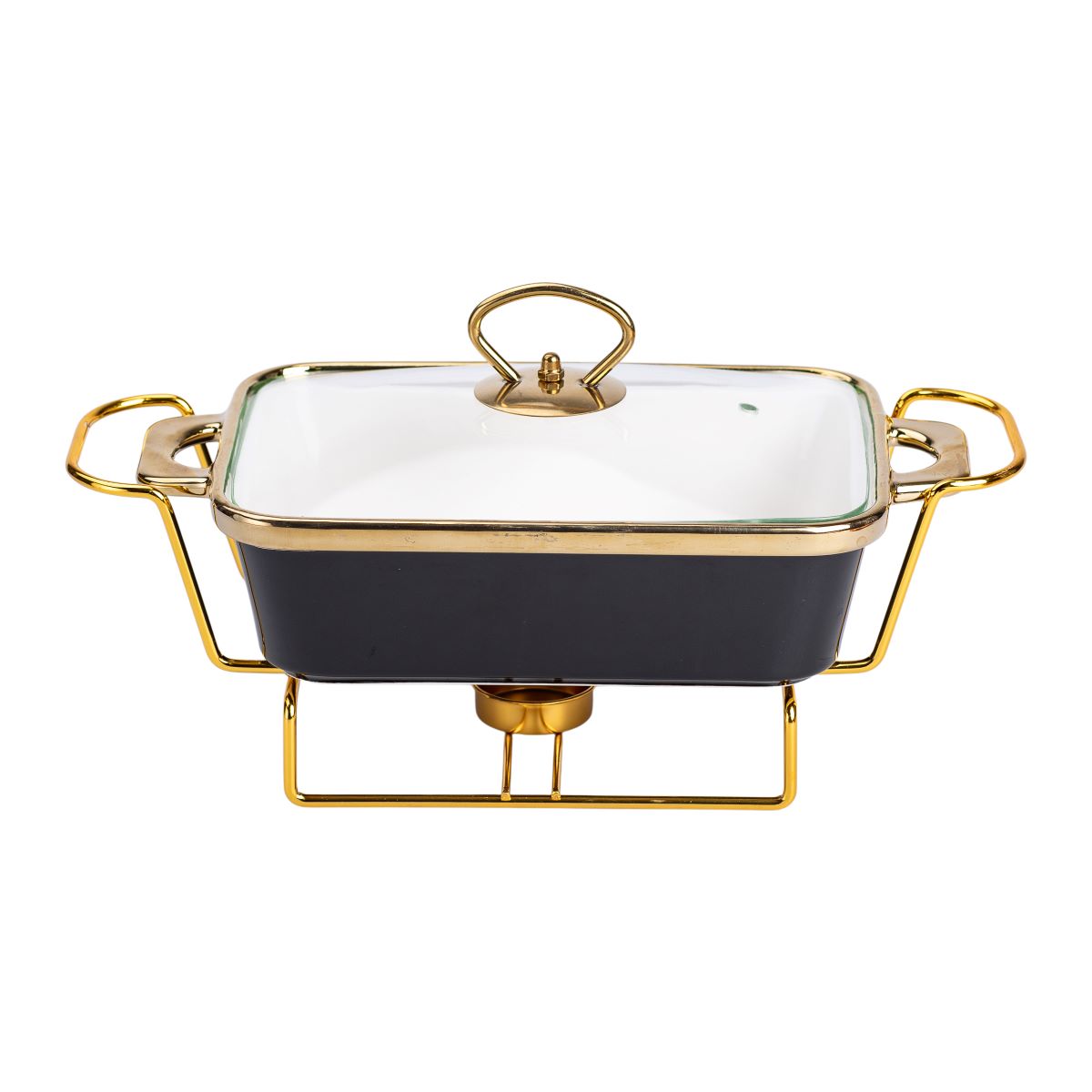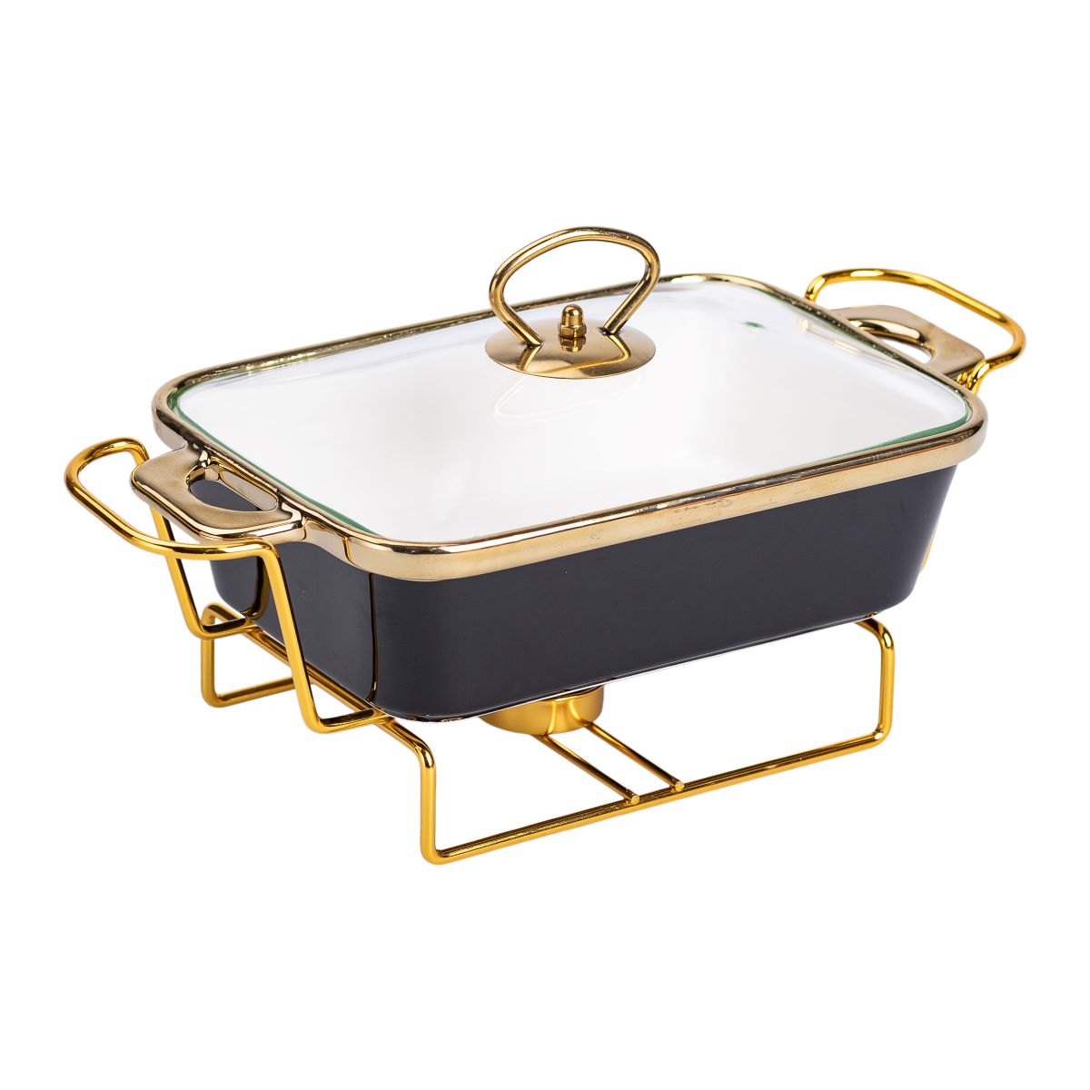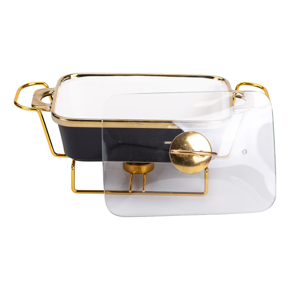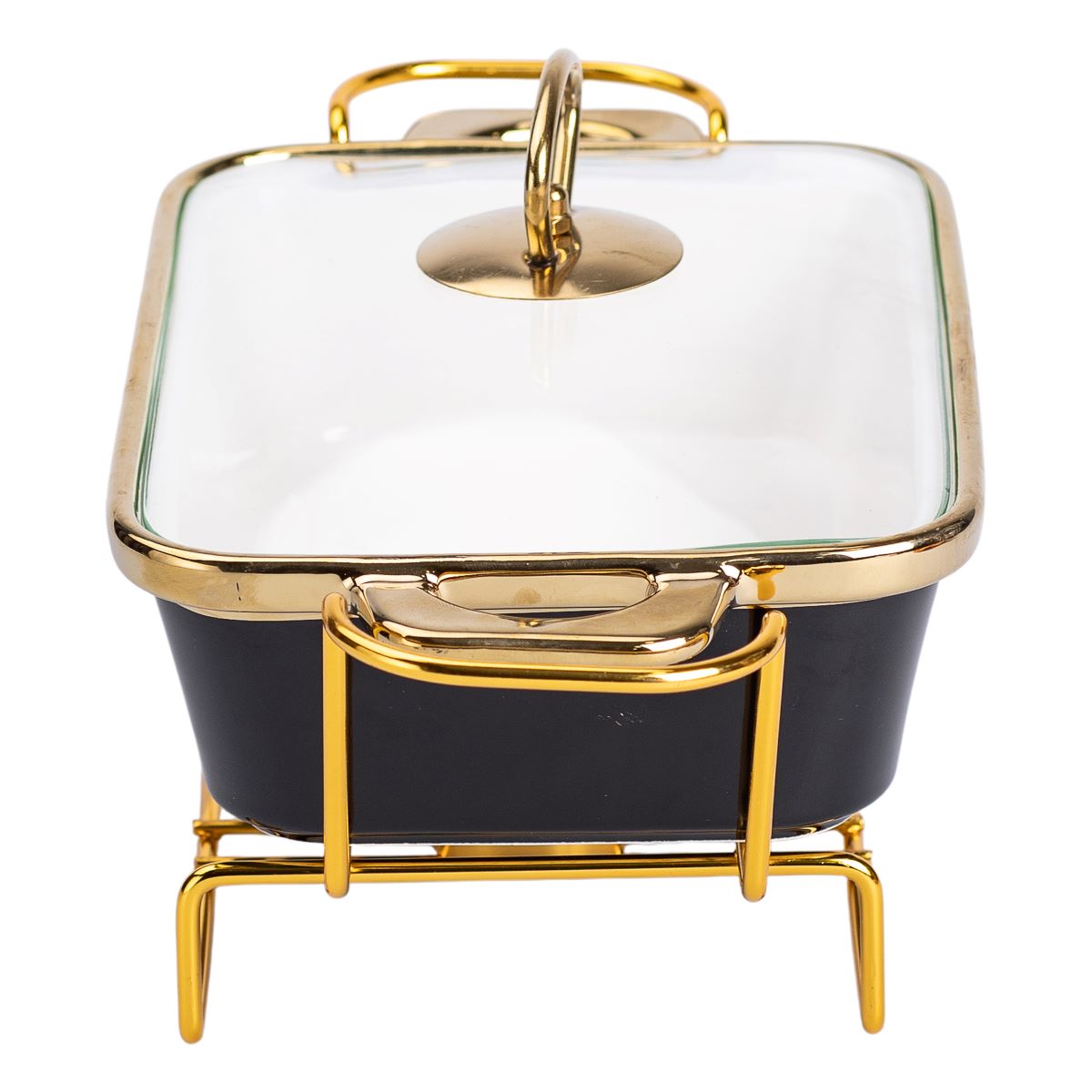 Марміт порцелянаовий із скляною кришкою 31х16х15.5 см на металевій підставці 1 л Чорний HTJ-1001
