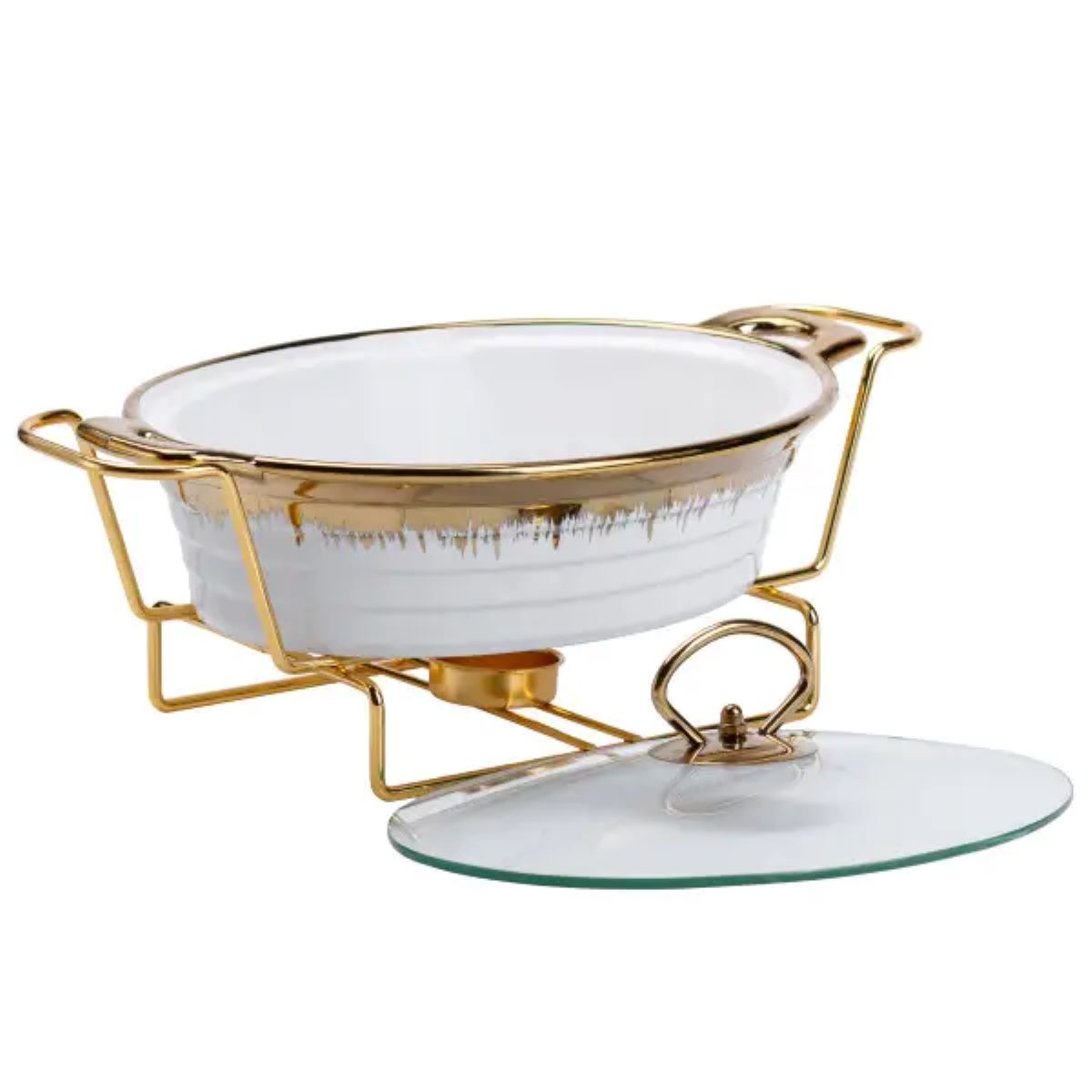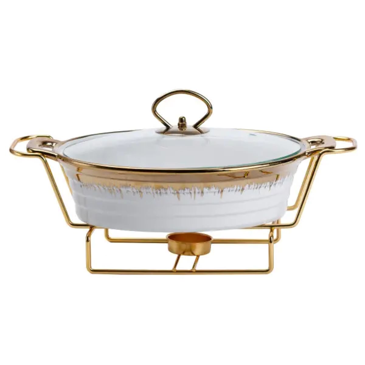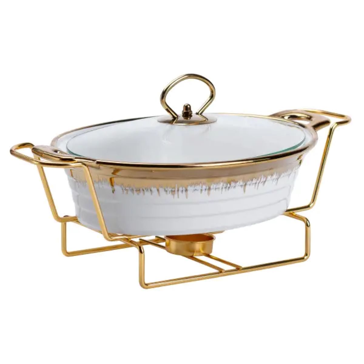 Мармітниця порцелянова 1 літр кругла, підставка з підігрівом HP1025