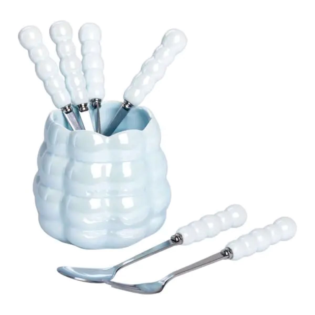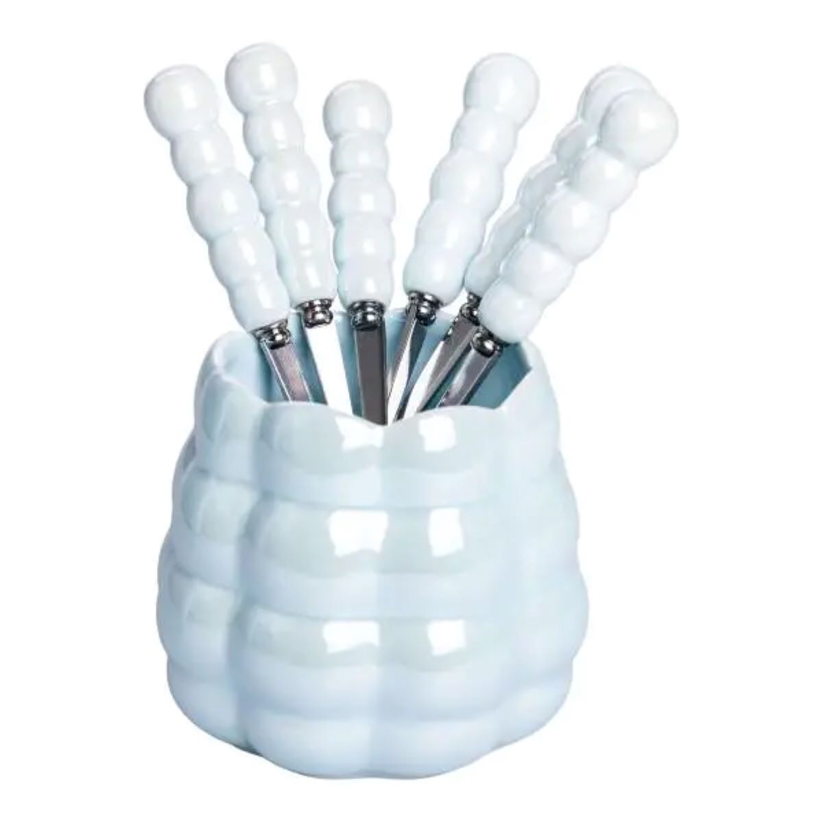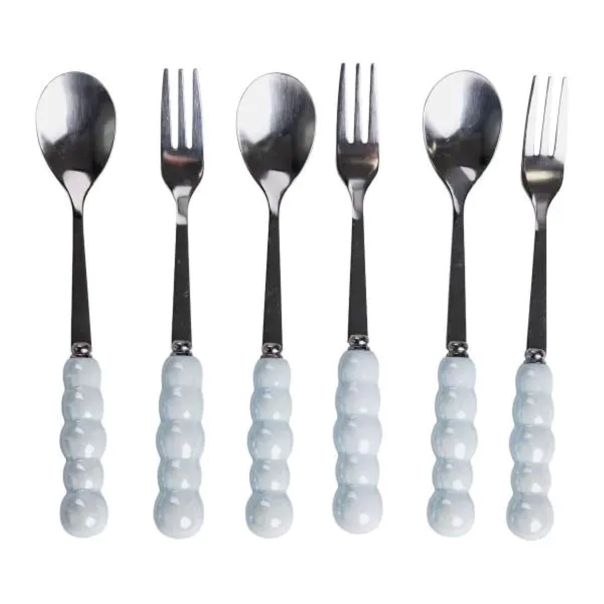 Набір десертних виделок і ложок на 3 персони з підставкою з порцелянау 7 предметів Блакитний HP-20-57