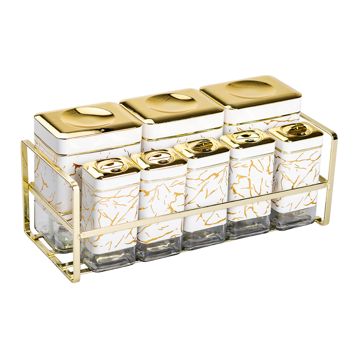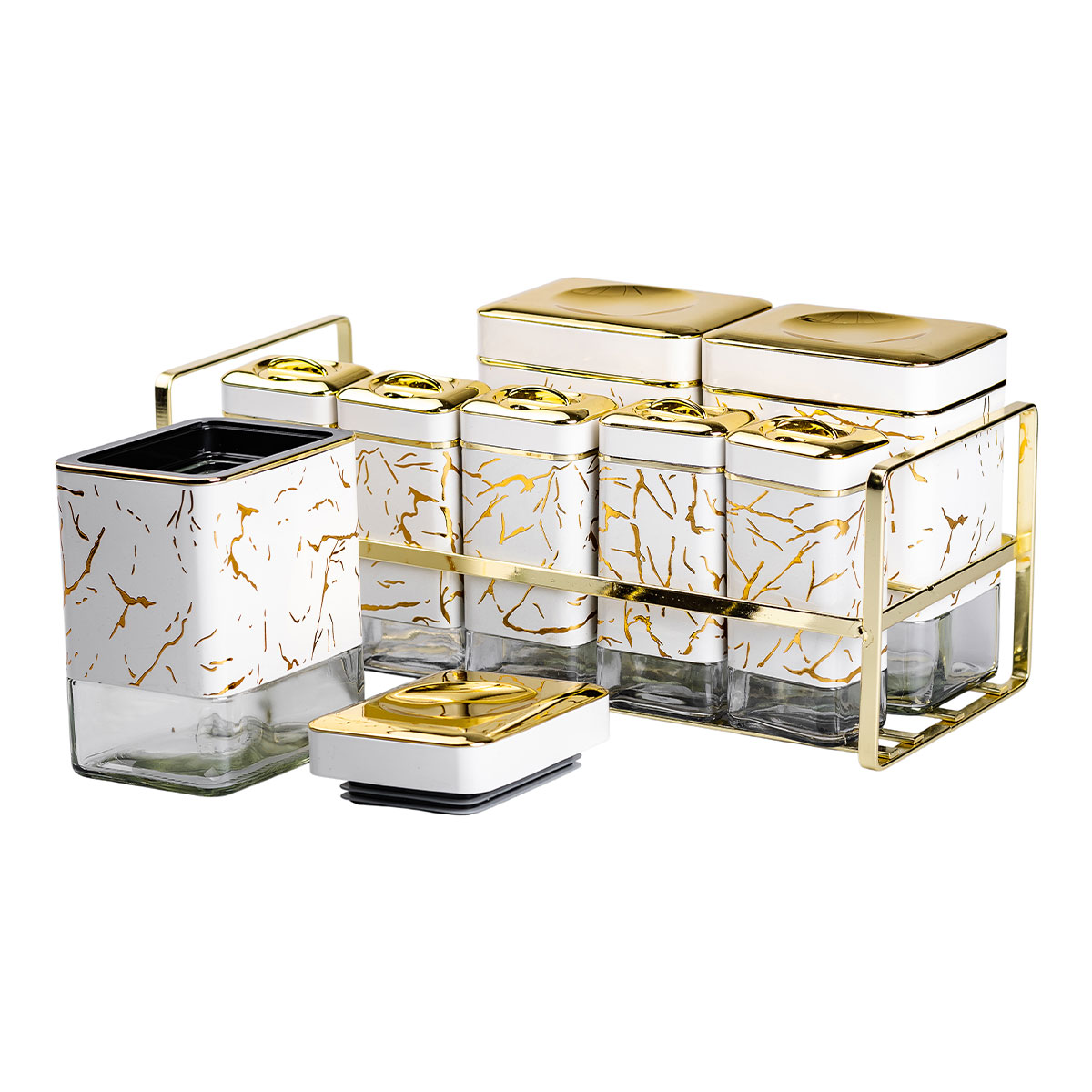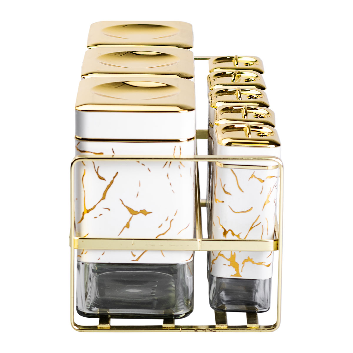 Набір для спецій на підставці з кришками – це не тільки зручний та практичний аксесуар для вашої кухні, але й справжня прикраса інтер’єру. Він включає 8 стильних ємностей, кожна з яких має елегантну кришку. Основні характеристики набору баночок для зберігання спецій та соусів розмір набору 33.5×14×15 см; матеріал ємностей – скло; матеріал підставки – метал. Характеристики великої ємності об’єм 0.65 л; висота 14.5 см; довжина 10 см; ширина 7.5 см. Характеристики малої ємності об’єм 0.15 л; висота 12.5 см; довжина 5.5 см; ширина 4.0 см. Набір ідеально підійде для організації вашого кулінарного простору, забезпечуючи чистоту та порядок зберігання спецій. Металева підставка підкреслить стиль вашої кухні. Цей набір стане чудовим подарунком для будь-якого любителя кулінарії. Купити набір ємностей для спецій та соусів можна з доставкою по всій Україні.