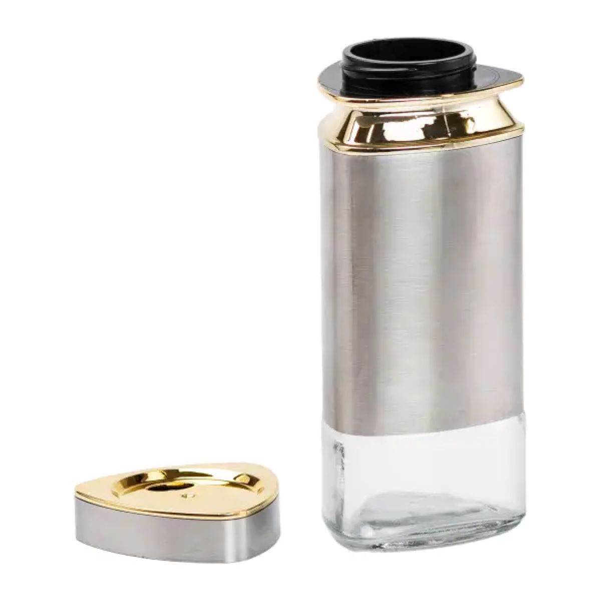Комплект, виготовлений з пластику та скла, включає чотири банки для спецій та зручну підставку з ручками. Банки зі скла не вбирають запахи, що дозволяє зберігати спеції свіжими і смачними. Цей комплект для спецій стане ефектним доповненням до вашої кухні, адже підставка надійно утримує ємності, запобігаючи їх вислизанню, та надає кухні компактного й акуратного вигляду. Характеристики та переваги Розмір: 11,5 х 11,5 х 16 см Об’єм контейнерів: 120 мл Матеріал контейнерів: скло і пластик Матеріал підставки: пластик Простота у використанні з акцентом на увагу до деталей Заходи безпеки Для підтримки тривалого використання рекомендується мити банки вручну, уникаючи абразивних чистячих засобів. Не залишайте комплект на прямому сонці, щоб уникнути деформації пластику.