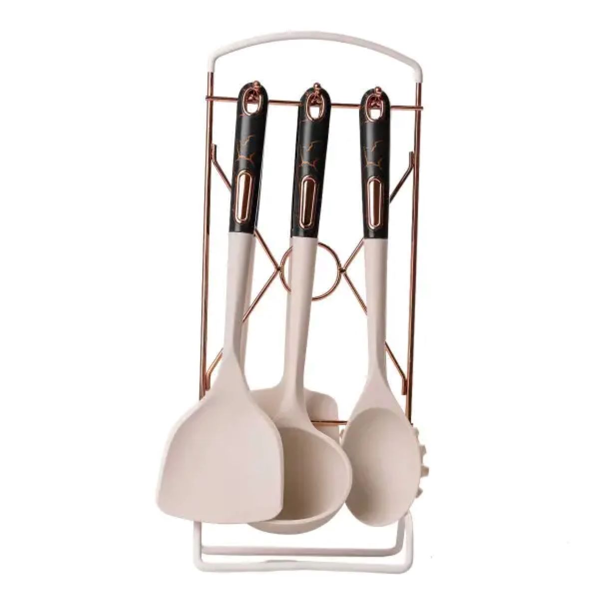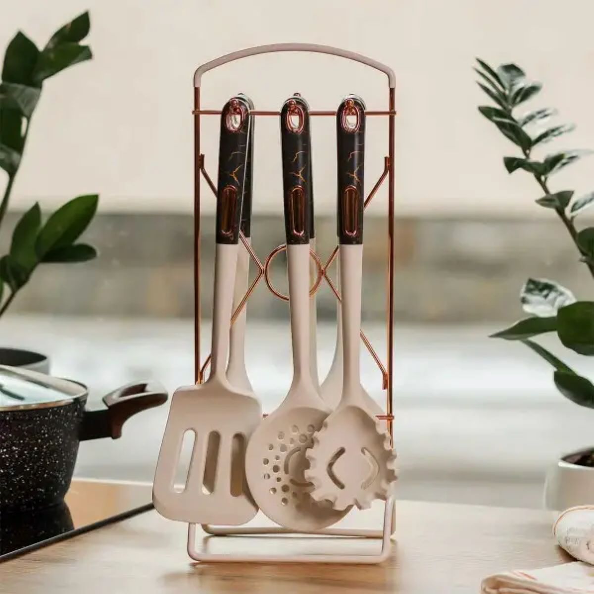 Набір кухонного приладдя на підставці 6 штук кухонні аксесуари Бежевий із чорною ручкою YRUR4
