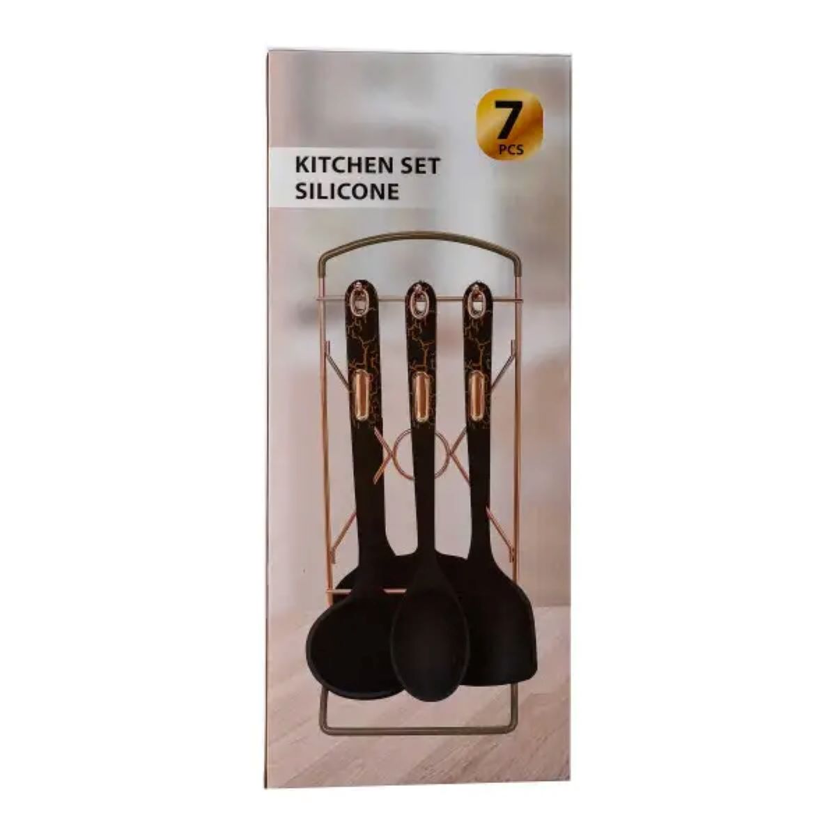 Набір кухонного приладдя на підставці включає шість стильних аксесуарів у мармуровому дизайні: ополоник, кухонні лопатки, кухарські ложки, шумівки, ложки для спагетті. Цей елегантний комплект має сучасний вигляд і приємний на дотик матеріал, що надає кухні стильного акценту. Характеристики: Матеріал: харчовий пластик, силікон Включає: ополоник, кухонні лопатки, кухарську ложку, шумівку, ложку для спагетті, підставку Розмір приладів: 32,5 см Переваги: Елегантний дизайн: сучасний мармуровий вигляд, що підкреслює стиль вашої кухні. Функціональність: зручна підставка для організації та легкого доступу до інструментів. Приємні на дотик матеріали: забезпечують комфорт під час використання. Догляд: Не мийте приладдя в посудомийній машині Використовуйте м’які миючі засоби Ретельно висушуйте після миття Зберігайте у сухому місці