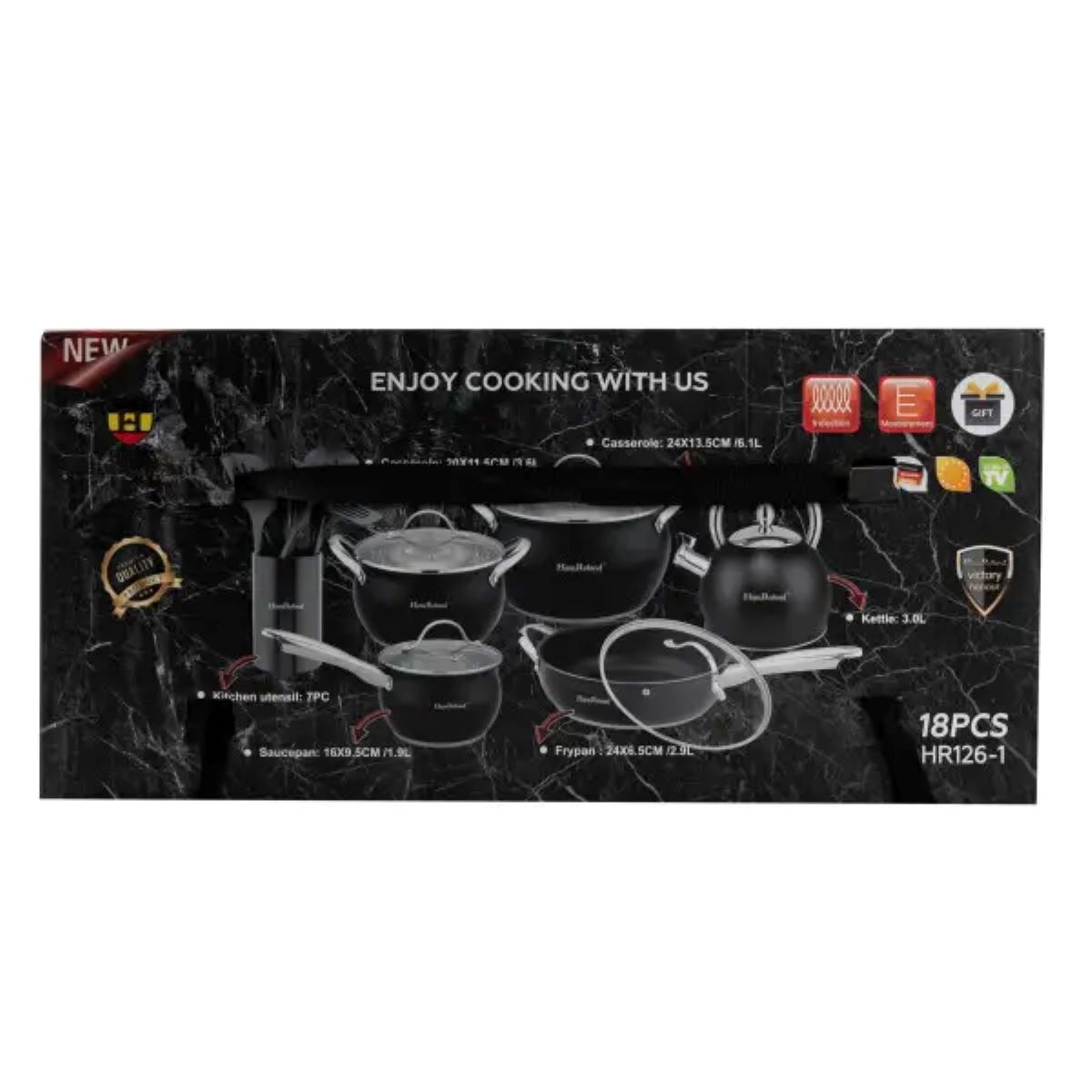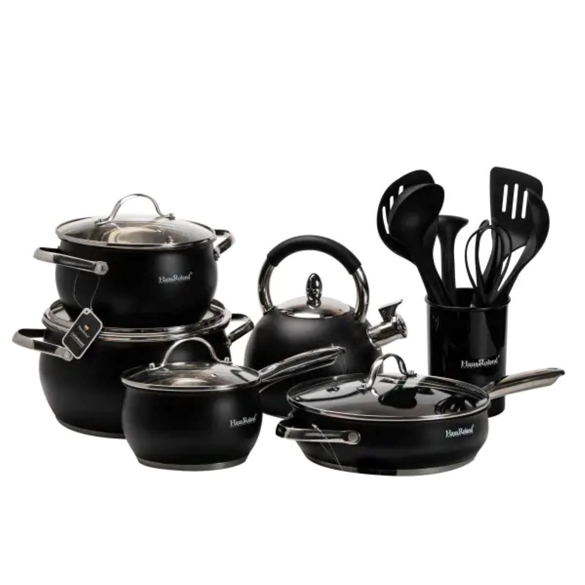 Набір посуду для приготування з нержавіючої сталі 12 предметів, чорний HP33548