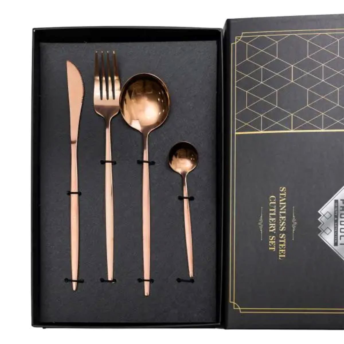 Будьте першим, хто залишив відгук на “Набір столових приборів 24 предмети набір ложок виделок і ножів на 6 персон Бронзовий HP-20-44”