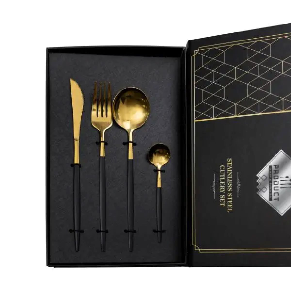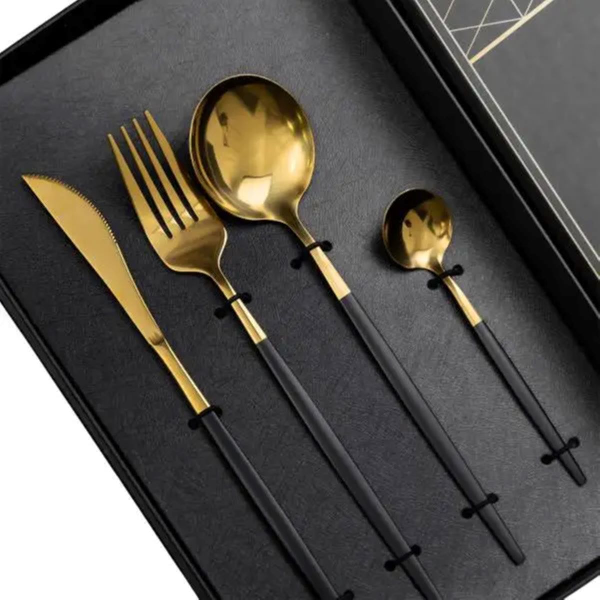 Набір столових приборів 24 предмети столовий набір на 6 персон Золотистий з чорним HP-20-46