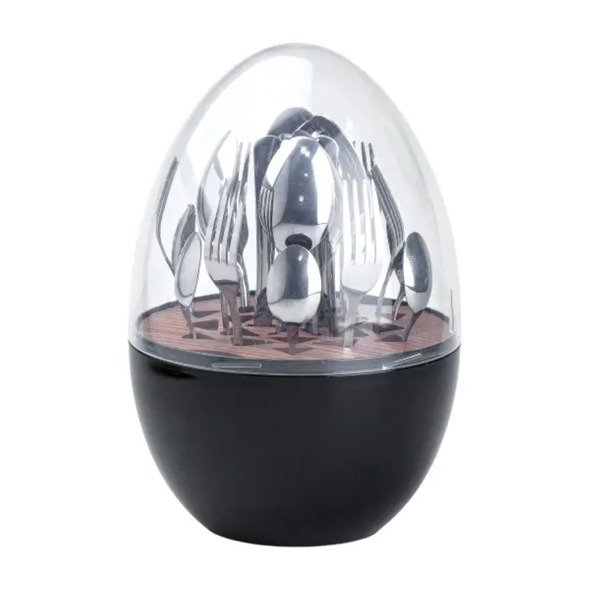 Набір столових приладів на 6 персон із нержавіючої сталі 24 штуки з підставкою Яйце Чорний HP78811
