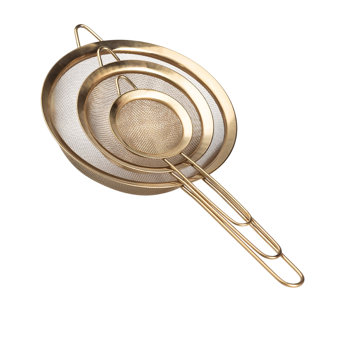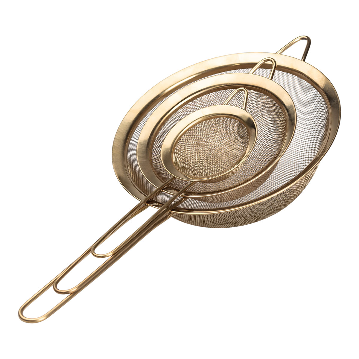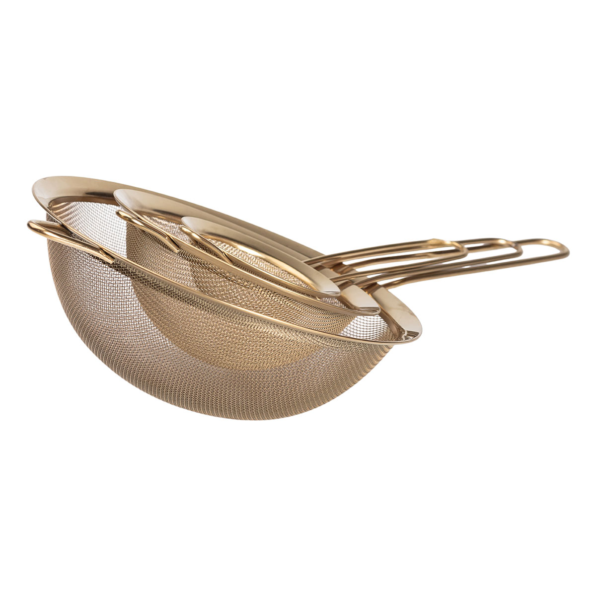 Набір ситечок 3 штуки для чаю, круп і борошна 8,14 і 20 см з нержавіючої сталі Золотистий HP-19-21