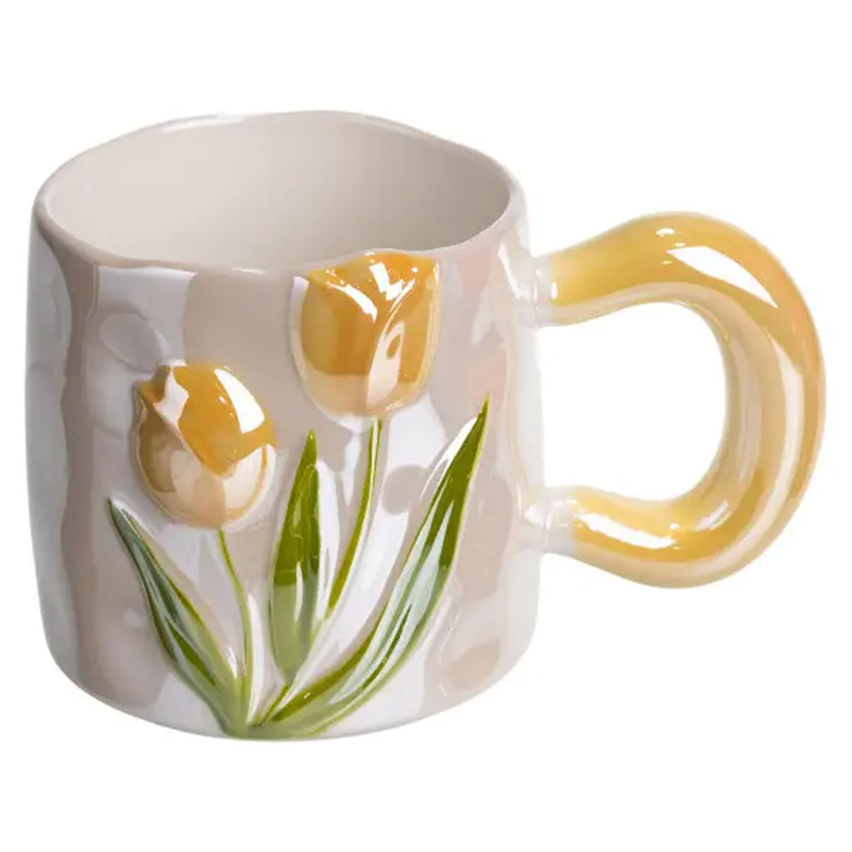 Додайте нотку весняної ніжності та вишуканості у ваш ранок! Ця неймовірна чашка — справжній витвір мистецтва, виготовлений з якісної порцеляни. Головна родзинка — об’ємні 3D-квіти тюльпанів, які ніби “розквітають” просто на стінках, створюючи унікальний тактильний ефект. Образ довершує велика, перламутрова ручка незвичайної округлої форми, яка зручно лежить у руці та додає чашці особливого шарму. Основні характеристики новорічної чашки на подарунок: Висота: 9 см; Діаметр: 9 см; Об’єм: 400 мл; Матеріал: порцеляна. Завдяки комфортному об’єму 400 мл та затишній формі, вона ідеально підходить для лате, какао або вашого улюбленого чаю. Це не просто посуд, а готовий вишуканий подарунок, який гарантовано справить враження та прикрасить будь-яку кухню.