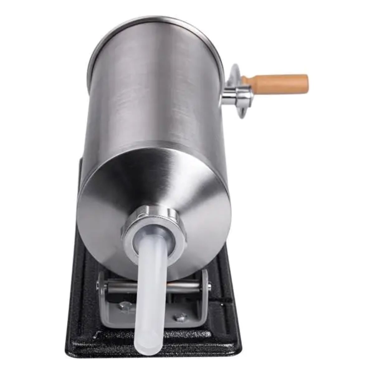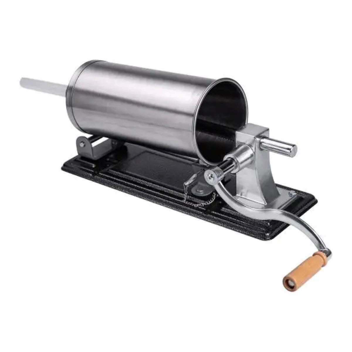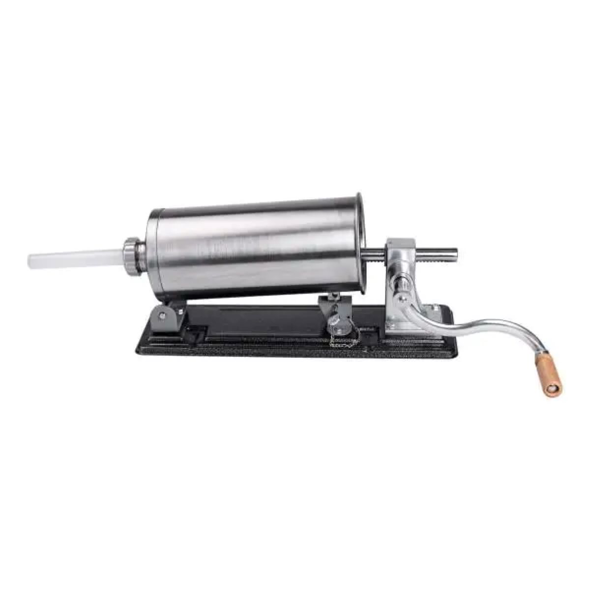 Ручний горизонтальний ковбасний шприц – незамінний інструмент для приготування домашньої ковбаси та м’ясних виробів. Завдяки продуманому дизайну і якісним матеріалам, цей шприц ідеально підходить як для домашнього використання, так і для невеликих виробництв. Зручний в експлуатації та легкий в обслуговуванні, він стане чудовим помічником у приготуванні смачних ковбас. Основні характеристики: Розміри: 44 x 15 x 19 см; Об’єм циліндра: 3 л; Кількість насадок: 4 шт; Діаметр насадок: 14 мм, 18 мм, 22 мм, 26 мм; Діаметр циліндра: 13 см; Матеріал корпусу: нержавіюча сталь; Матеріал насадок: пластик; Матеріал ручки: нержавіюча сталь + дерево; Кріплення: струбцини для надійної фіксації шприца на робочій поверхні; Ключ у комплекті: використовується для закріплення шприца в корпусі та регулювання механізму для більш зручного та безпечного процесу роботи. Переваги: Міцний металевий корпус стійкий до корозії та механічних пошкоджень; Нековзна основа для надійної фіксації на робочій поверхні; Чотири змінні насадки дають змогу готувати ковбаси різних діаметрів; Зручна ручка забезпечує плавний і комфортний хід; Легко розбирається і очищається після використання. Зі шприцом для ковбас ви легко перетворите процес приготування на справжнє задоволення. Він економить час, спрощує роботу з фаршем і дозволяє домогтися акуратного, рівномірного наповнення оболонки. Незамінний інструмент для тих, хто цінує домашню якість, натуральність і контроль над кожним продуктом.