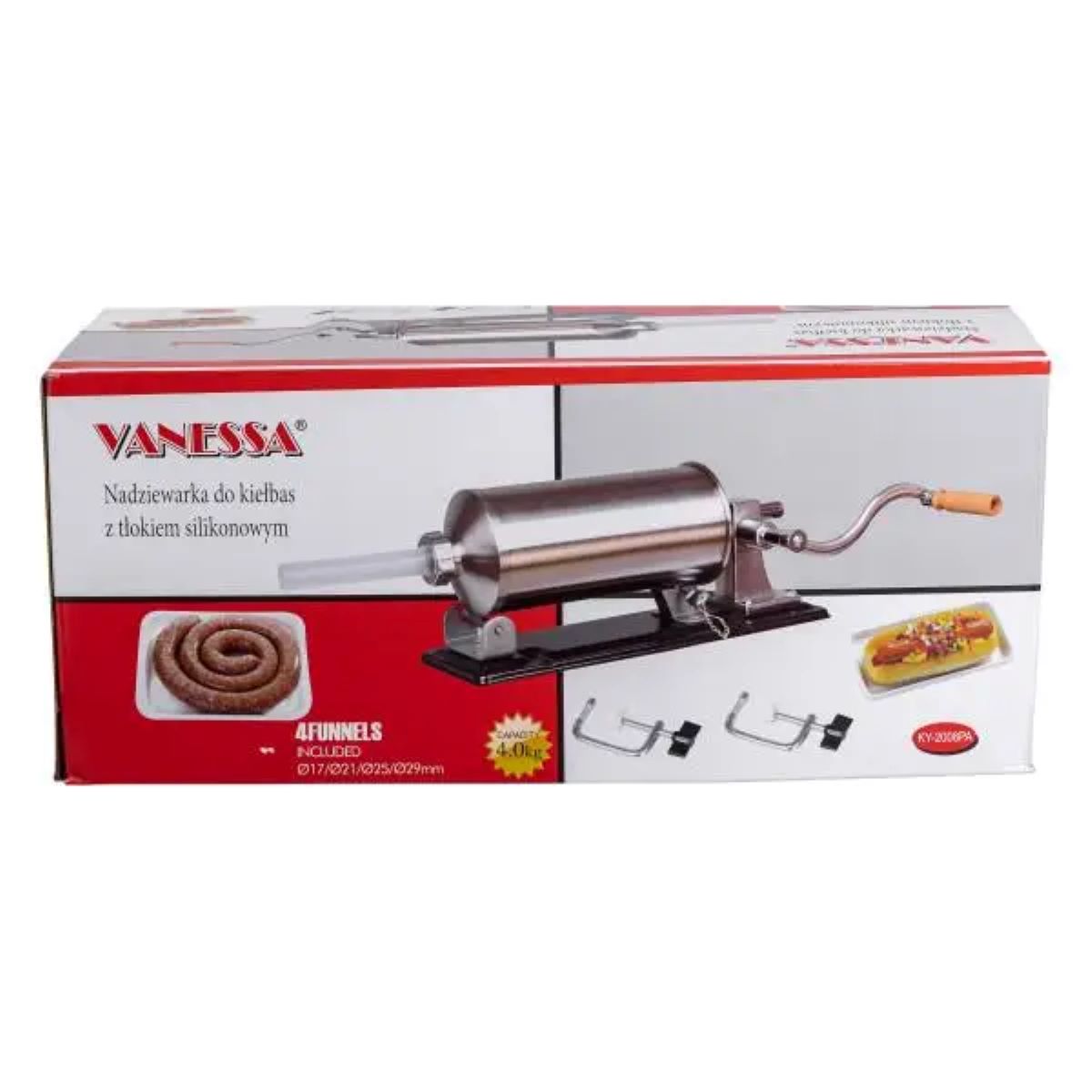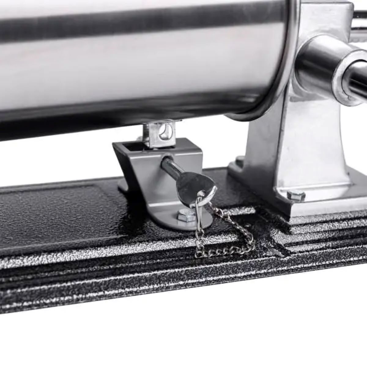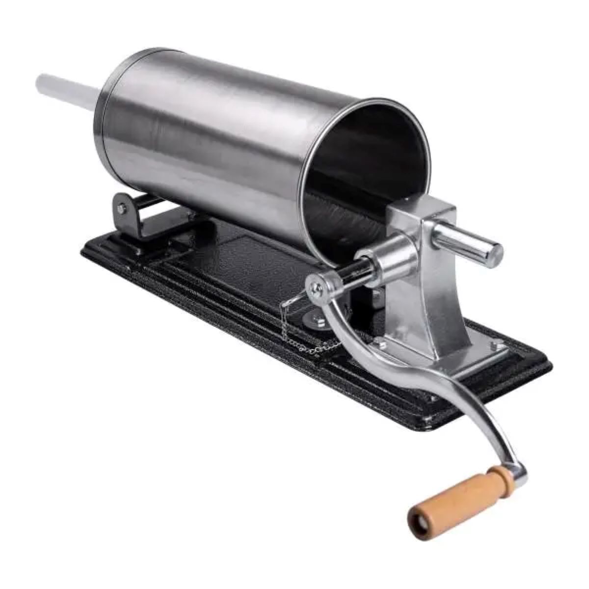 Ручний горизонтальний ковбасний шприц – незамінний інструмент для приготування домашньої ковбаси та м’ясних виробів. Завдяки продуманому дизайну і якісним матеріалам, цей шприц ідеально підходить як для домашнього використання, так і для невеликих виробництв. Зручний в експлуатації та легкий в обслуговуванні, він стане чудовим помічником у приготуванні смачних ковбас. Основні характеристики: Розміри: 44 x 15 x 19 см; Об’єм циліндра: 3 л; Кількість насадок: 4 шт; Діаметр насадок: 14 мм, 18 мм, 22 мм, 26 мм; Діаметр циліндра: 13 см; Матеріал корпусу: нержавіюча сталь; Матеріал насадок: пластик; Матеріал ручки: нержавіюча сталь + дерево; Кріплення: струбцини для надійної фіксації шприца на робочій поверхні; Ключ у комплекті: використовується для закріплення шприца в корпусі та регулювання механізму для більш зручного та безпечного процесу роботи. Переваги: Міцний металевий корпус стійкий до корозії та механічних пошкоджень; Нековзна основа для надійної фіксації на робочій поверхні; Чотири змінні насадки дають змогу готувати ковбаси різних діаметрів; Зручна ручка забезпечує плавний і комфортний хід; Легко розбирається і очищається після використання. Зі шприцом для ковбас ви легко перетворите процес приготування на справжнє задоволення. Він економить час, спрощує роботу з фаршем і дозволяє домогтися акуратного, рівномірного наповнення оболонки. Незамінний інструмент для тих, хто цінує домашню якість, натуральність і контроль над кожним продуктом.