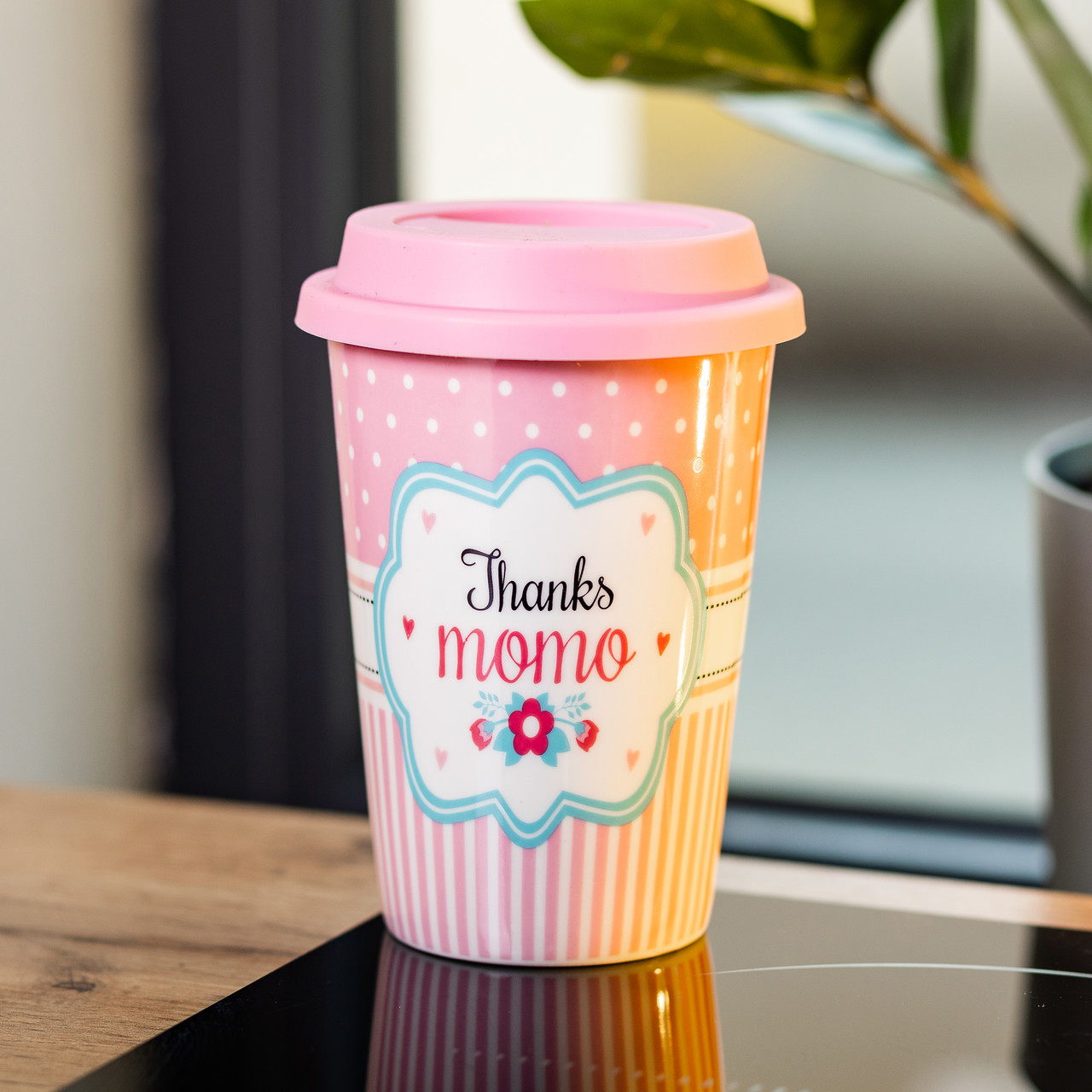 Стакан порцелянаовий 420 мл з силіконовою кришкою Thanks momo RX-N240288TM