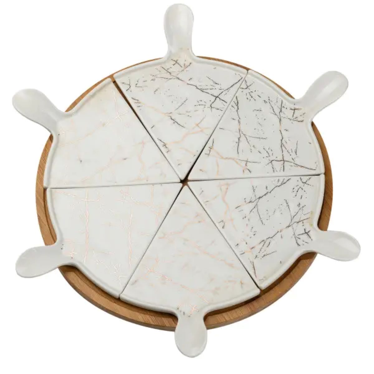 Тарілка для піци 28 см порцелянова з бамбуковою підставкою, що обертається, секційна HP1213