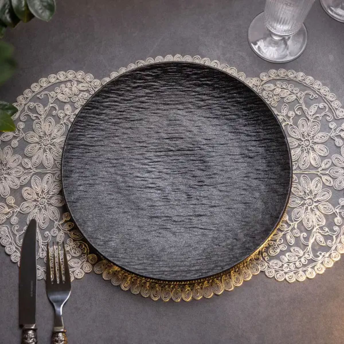 Тарілка сервірувальна порцелянова 25 см чорна HP-7-727